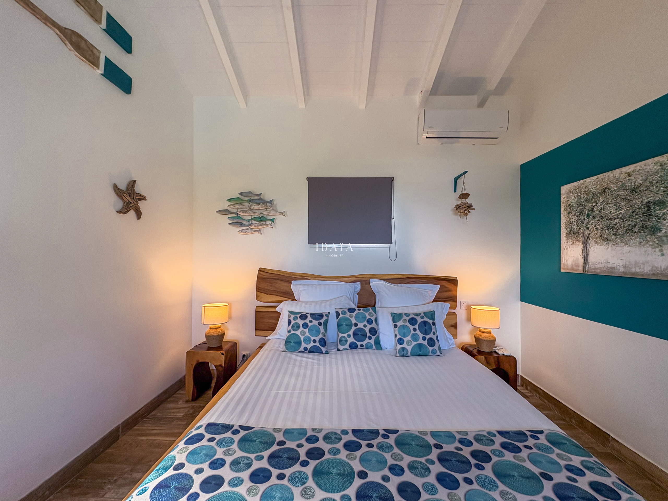 · An air-conditioned bedroom with a large 160 x 200 bed, combining comfort and tropical elegance.