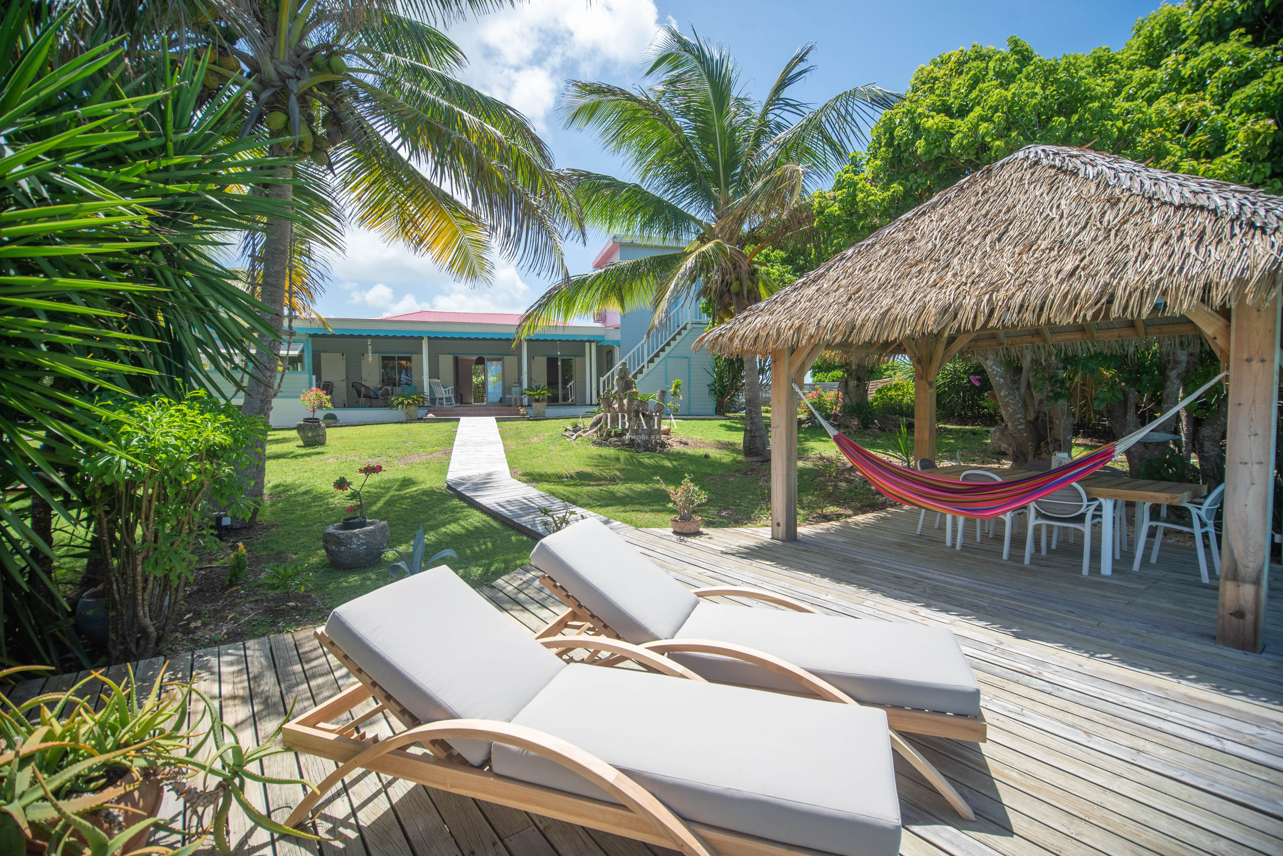 · Comfortable sun loungers, surrounded by a lush garden where hibiscus, palm trees and bougainvillea flourish.