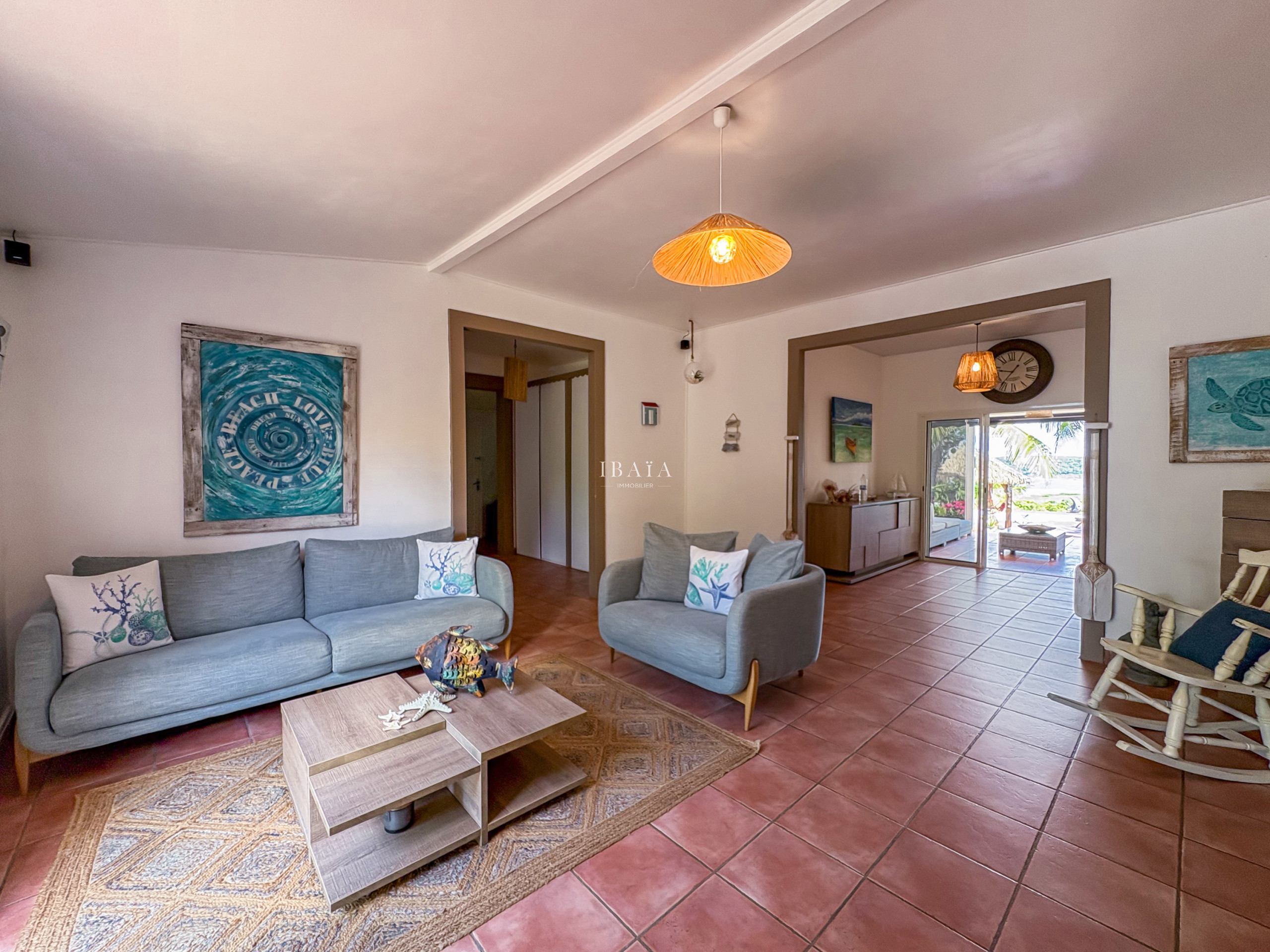 · A vast living room open to the terrace, inviting relaxation and convivial moments facing the ocean.