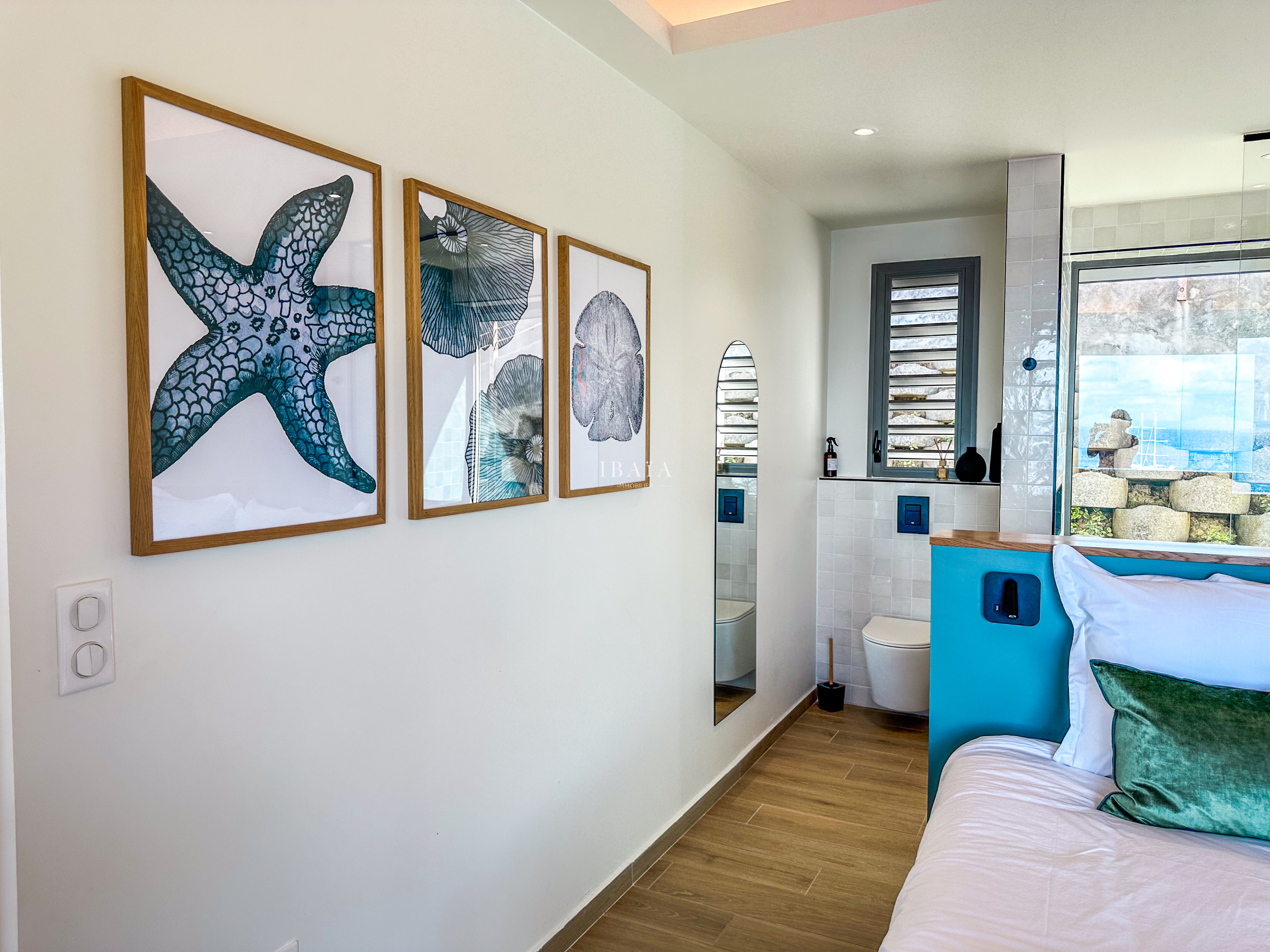 What makes our team's heart beat? The immediate proximity of Villa Opale to the Anse Figuier beach. Just a few steps are enough to find yourself with your feet in the golden sand, facing turquoise and crystal-clear waters. A rare privilege, offering moments of pure escape to be savoured from sunrise or throughout the day!