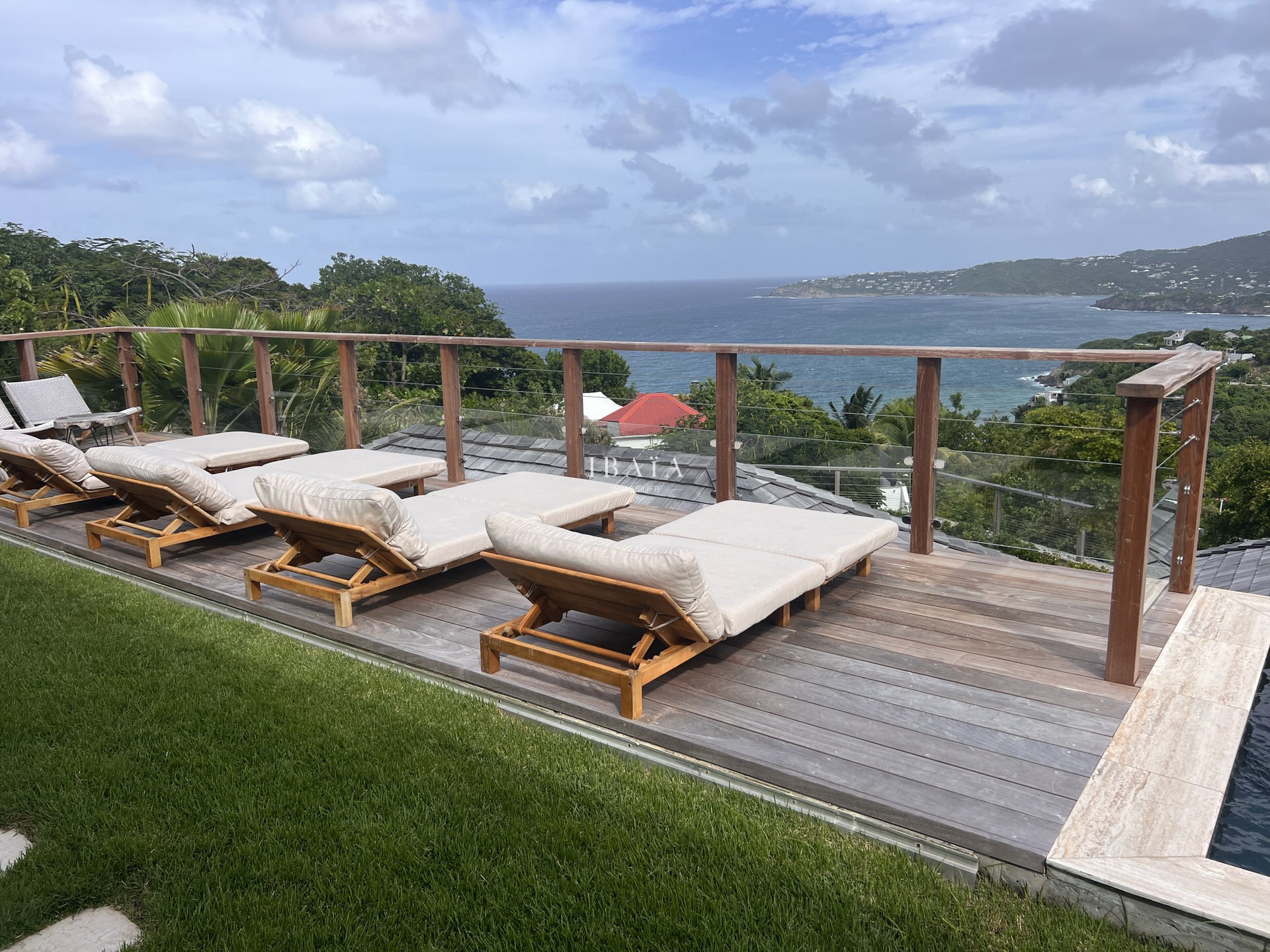 Perched on the heights of Anse des Cayes, Villa Lune and Villa Céleste form a refined and contemporary ensemble offering a total of three bedrooms, ideal for a peaceful getaway as a couple, with friends, or for a small group. Both properties offer a breathtaking sea view and a serene tropical setting, just a few minutes' drive from St. Jean and Gustavia.
