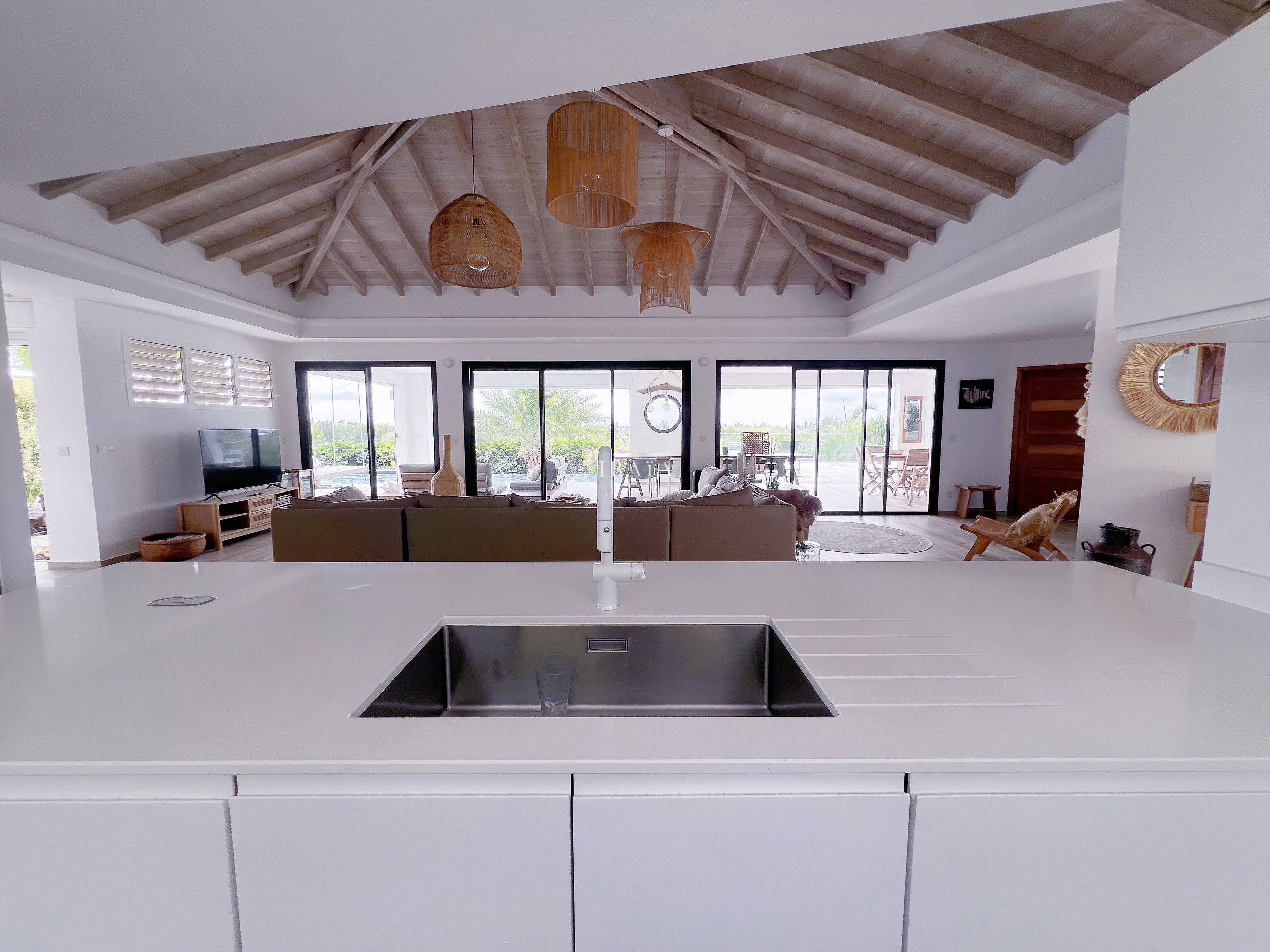 Designed to comfortably accommodate up to 10 people, the villa spreads its bright spaces over 2 levels. The clean lines of its architecture, its high-end furniture and cutting-edge equipment make it a place where everything is designed to enhance your stay. At the crossroads of modern comfort and Caribbean softness, Villa Rives d'Or invites you to savour the art of living with your feet in the water.