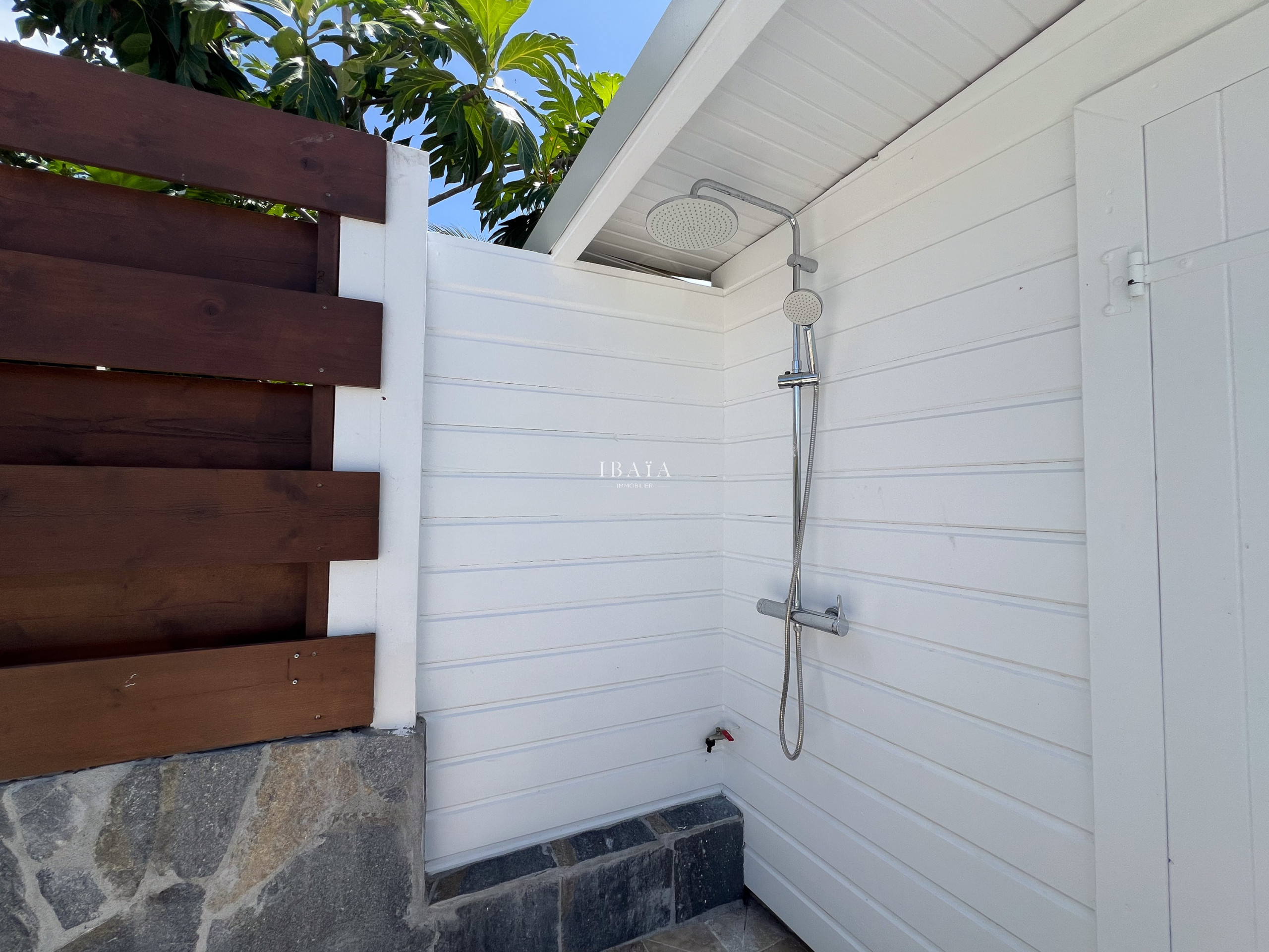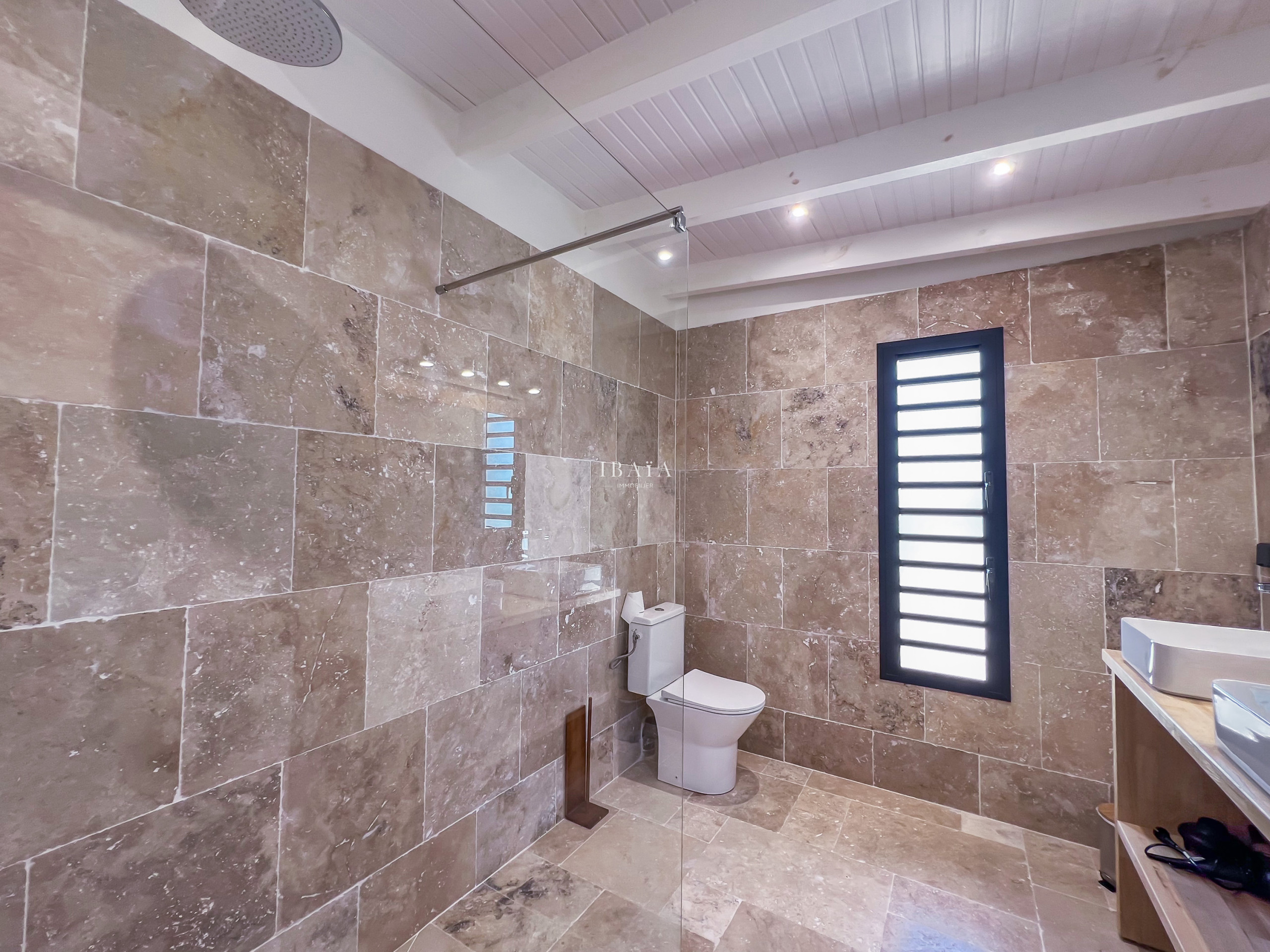 On the exterior side, a generous 1,400 m² garden houses a private swimming pool, ideal for relaxing and enjoying the tropical climate of Guadeloupe.