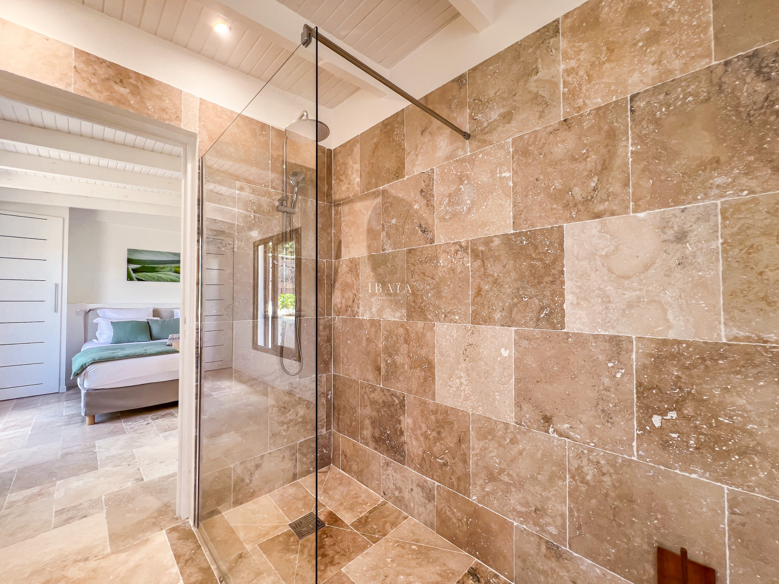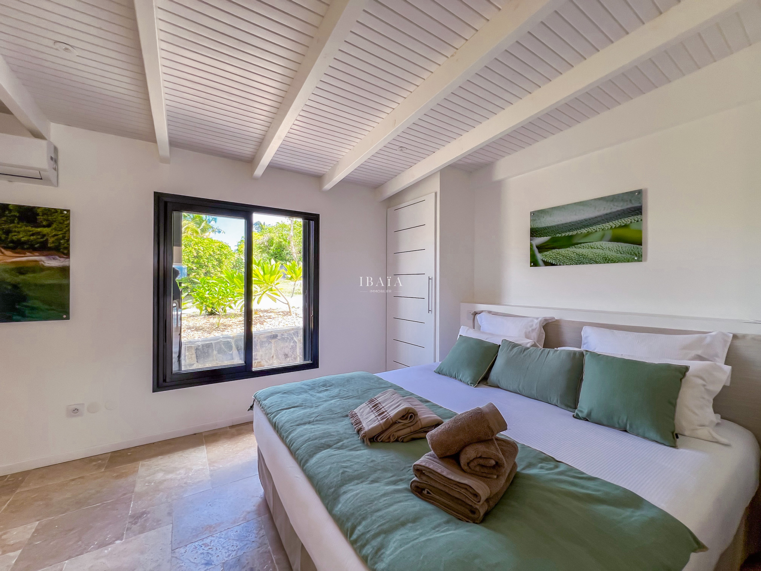 The villa comprises two air-conditioned master suites, each featuring a King Size bed (180x200), a private bathroom with WC, and a television. These spaces, designed for maximum comfort, are perfect for peaceful nights after a day full of discoveries.