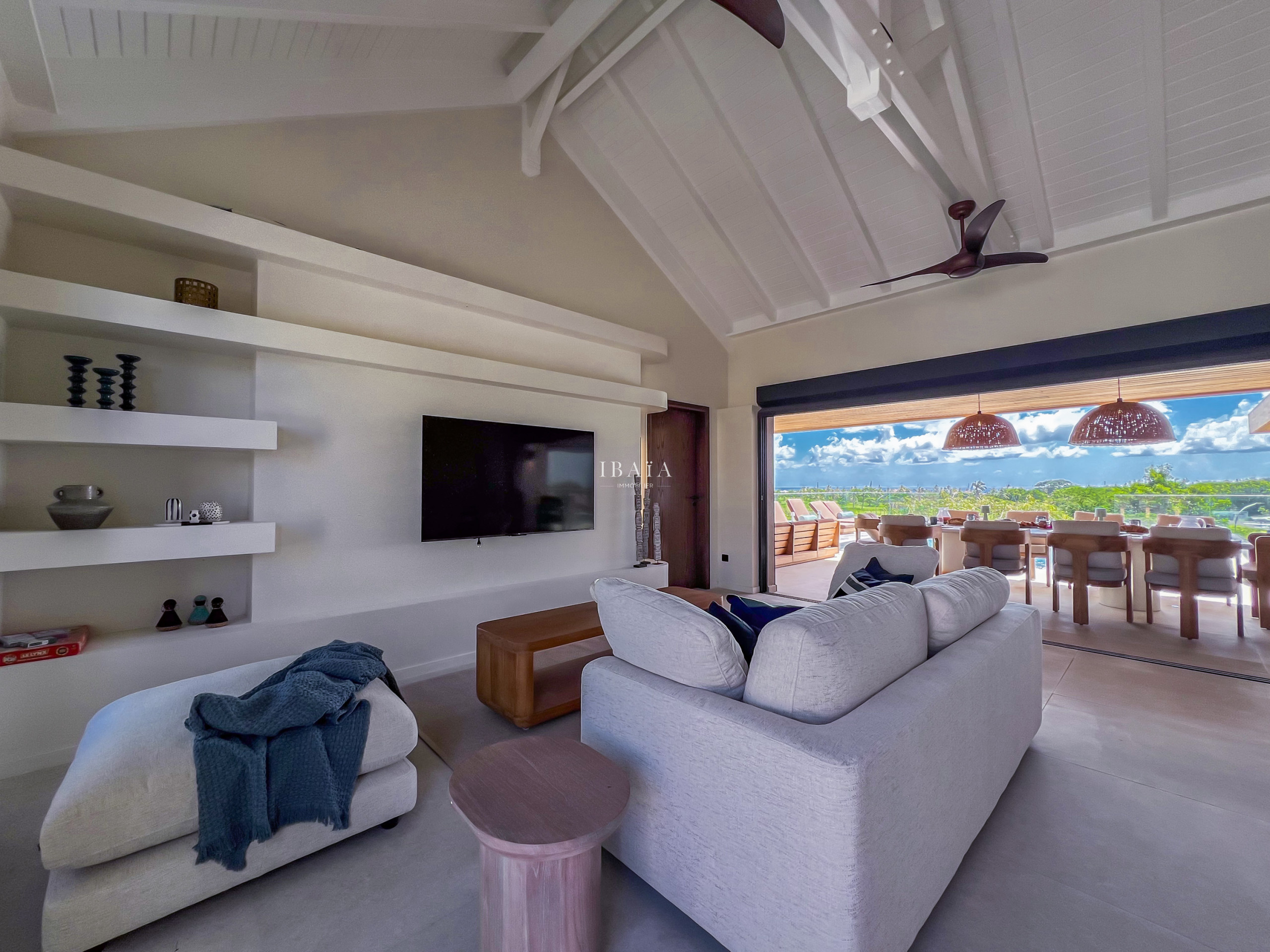 · A vast living room tastefully decorated, opening onto the pool with a beautiful sea view