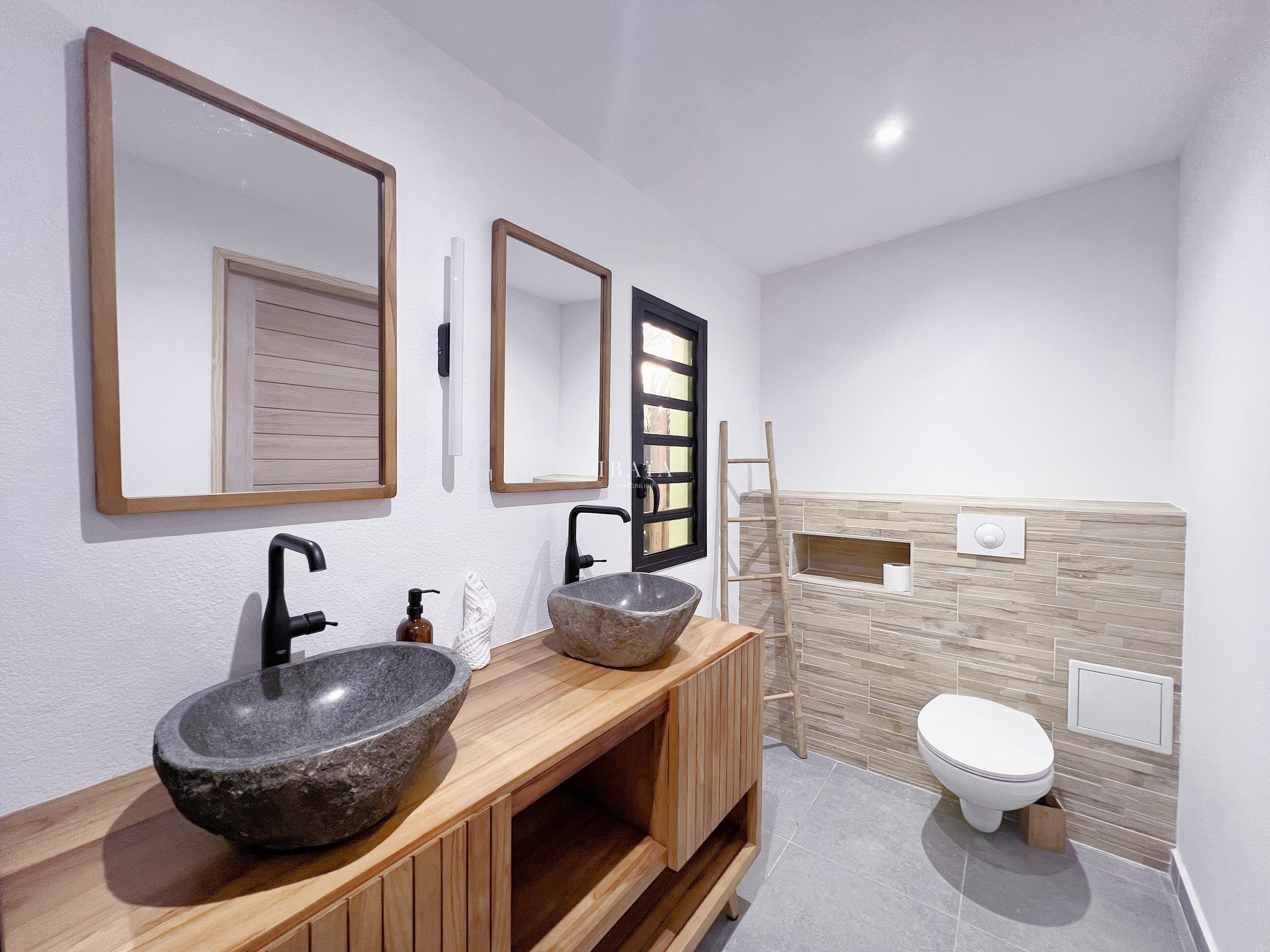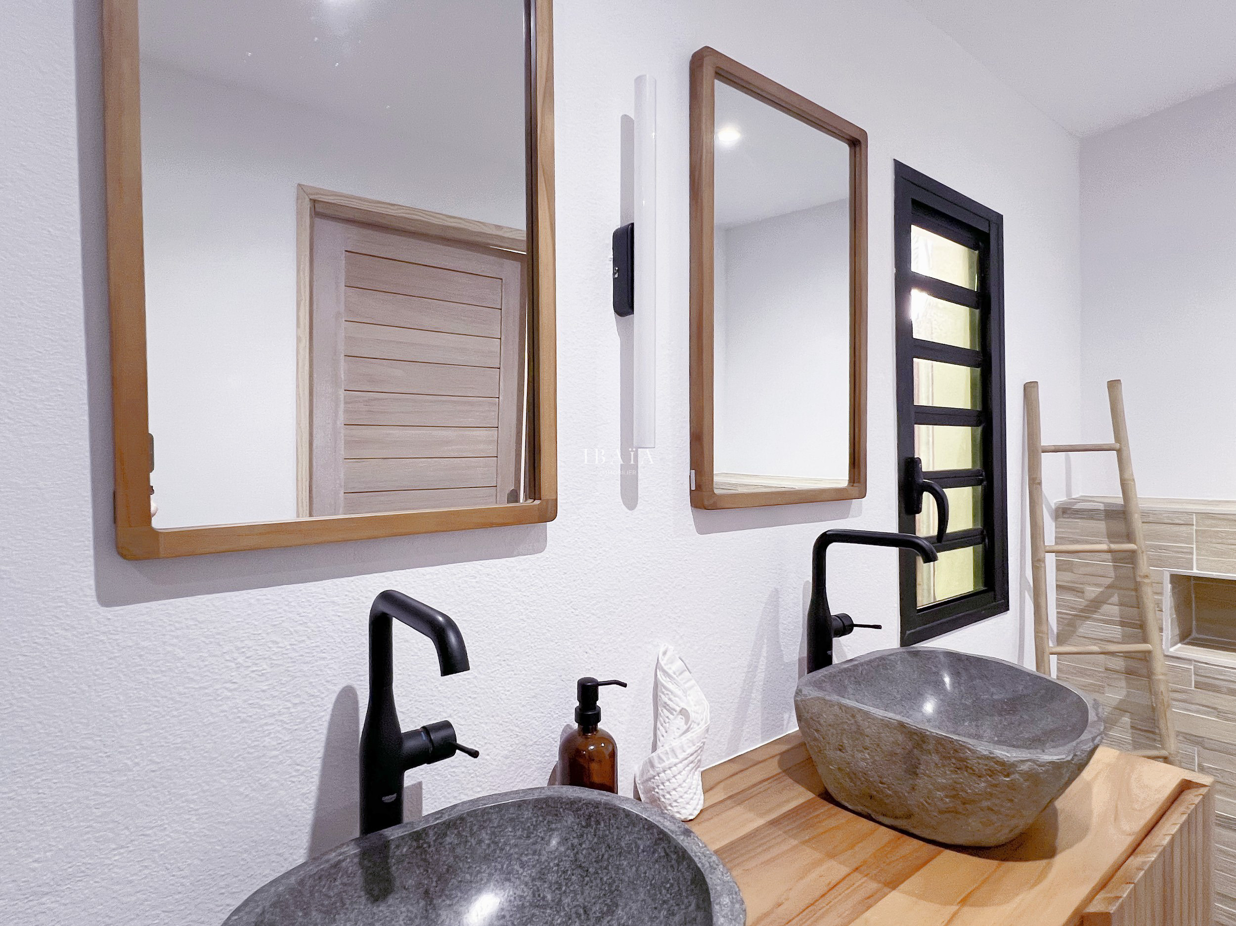 Designed for carefree holidays, Villa Miralya offers an ideal setting just steps away from restaurants and the seaside, perfect for lunches with your feet in the sand or cocktails facing the sunset! The magnificent beaches of Anse des Rochers and Manganao are just a 10-minute walk away, offering turquoise waters ideal for swimming, snorkelling, or simply enjoying a moment of relaxation under the coconut trees.