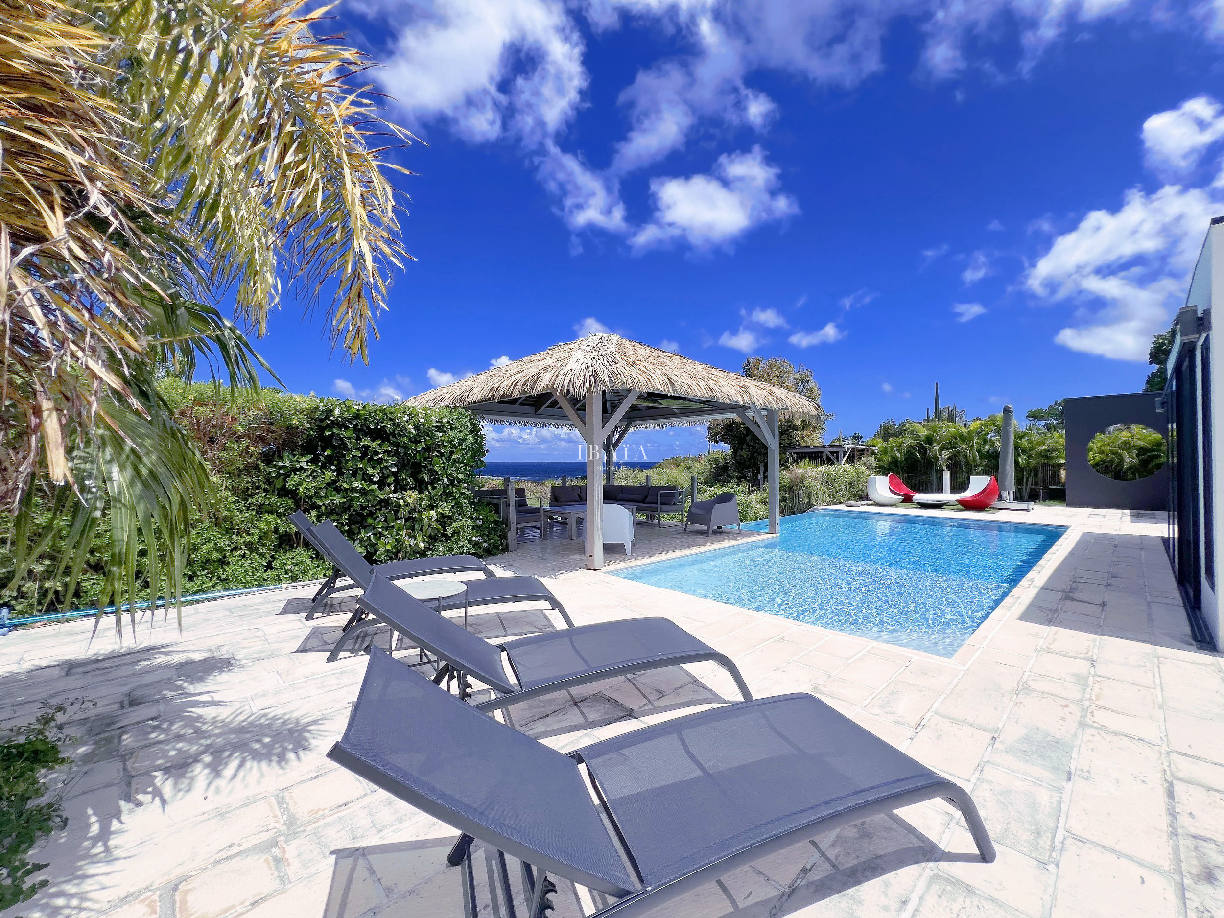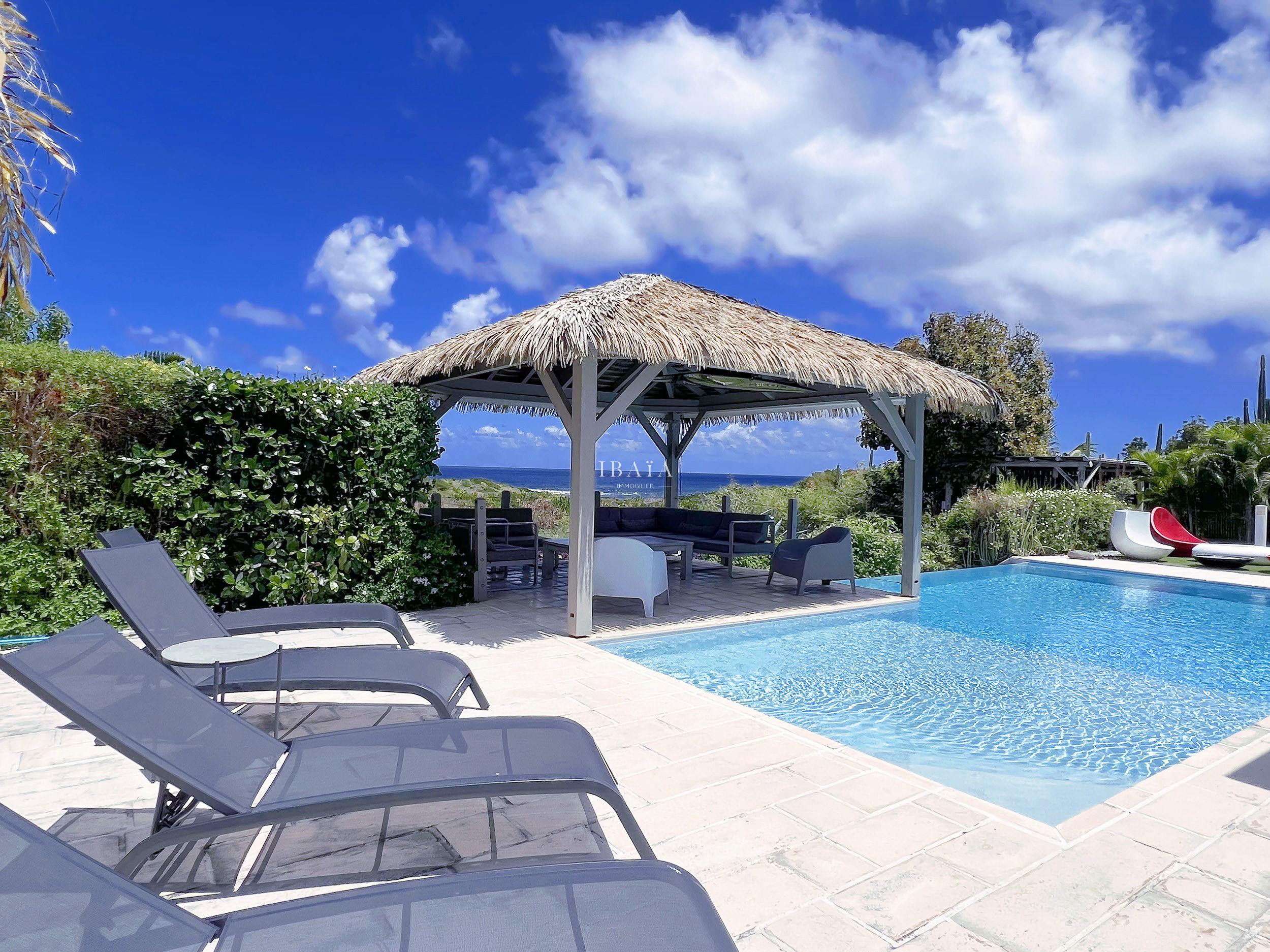 Live a tropical interlude, where each day begins with a dive into a sunny pool and ends in the comfort of a 5-person jacuzzi under the starry Caribbean sky... all just steps away from restaurants, shops and beaches, including the magnificent beaches of Anse des Rochers or Manganao, just a 10-minute walk away!