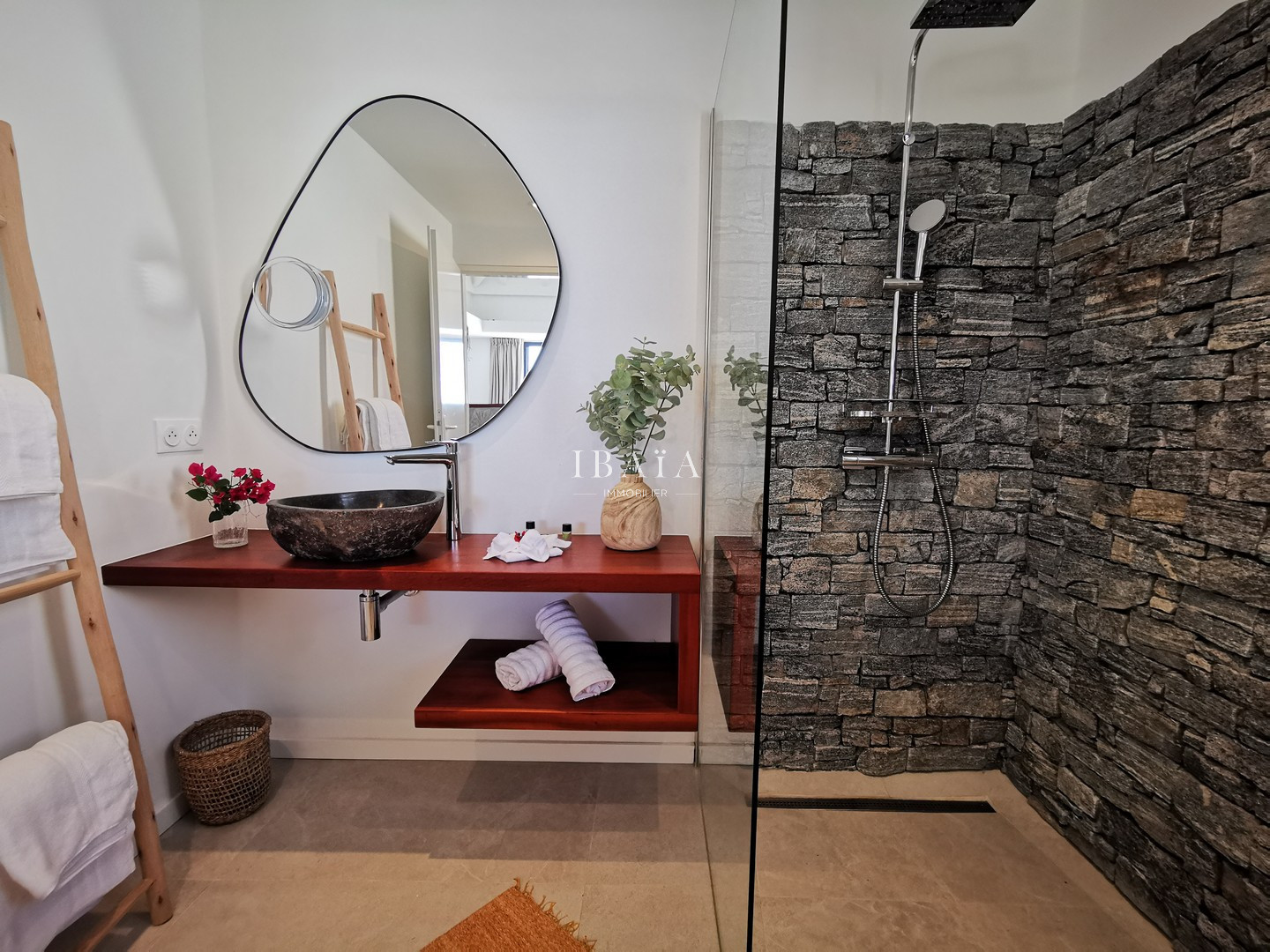 · 3 spacious air-conditioned bedrooms upstairs offering a panoramic sea view, with television, en-suite bathrooms and a balcony to savour suspended moments facing the horizon