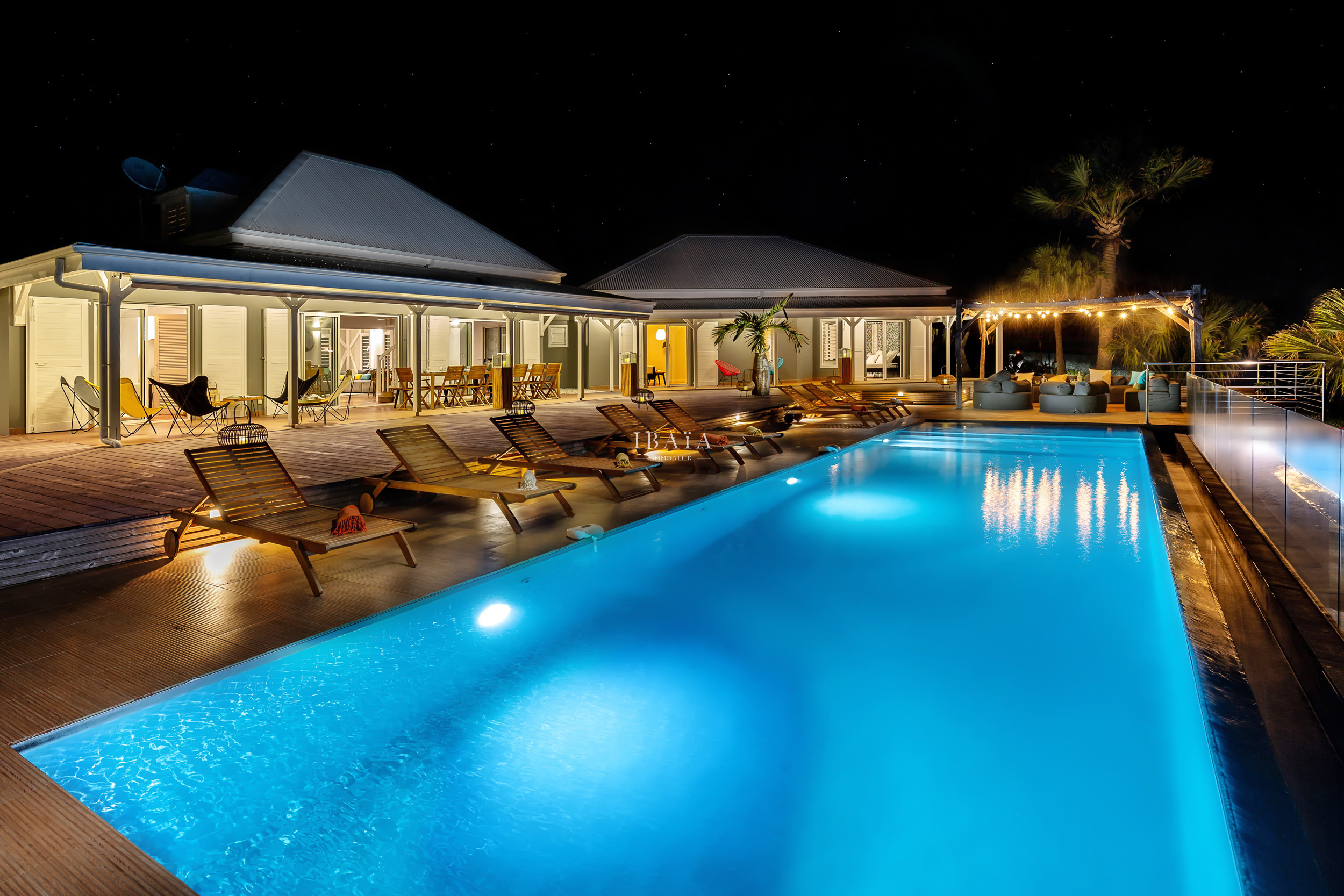Located in a quiet residential area, it offers total privacy while being only 2 km from the lively center of Sainte·Anne. This luxury villa, with its 6 luxurious suites and 2 swimming pools, is designed to accommodate up to 12 guests in an exceptional setting.