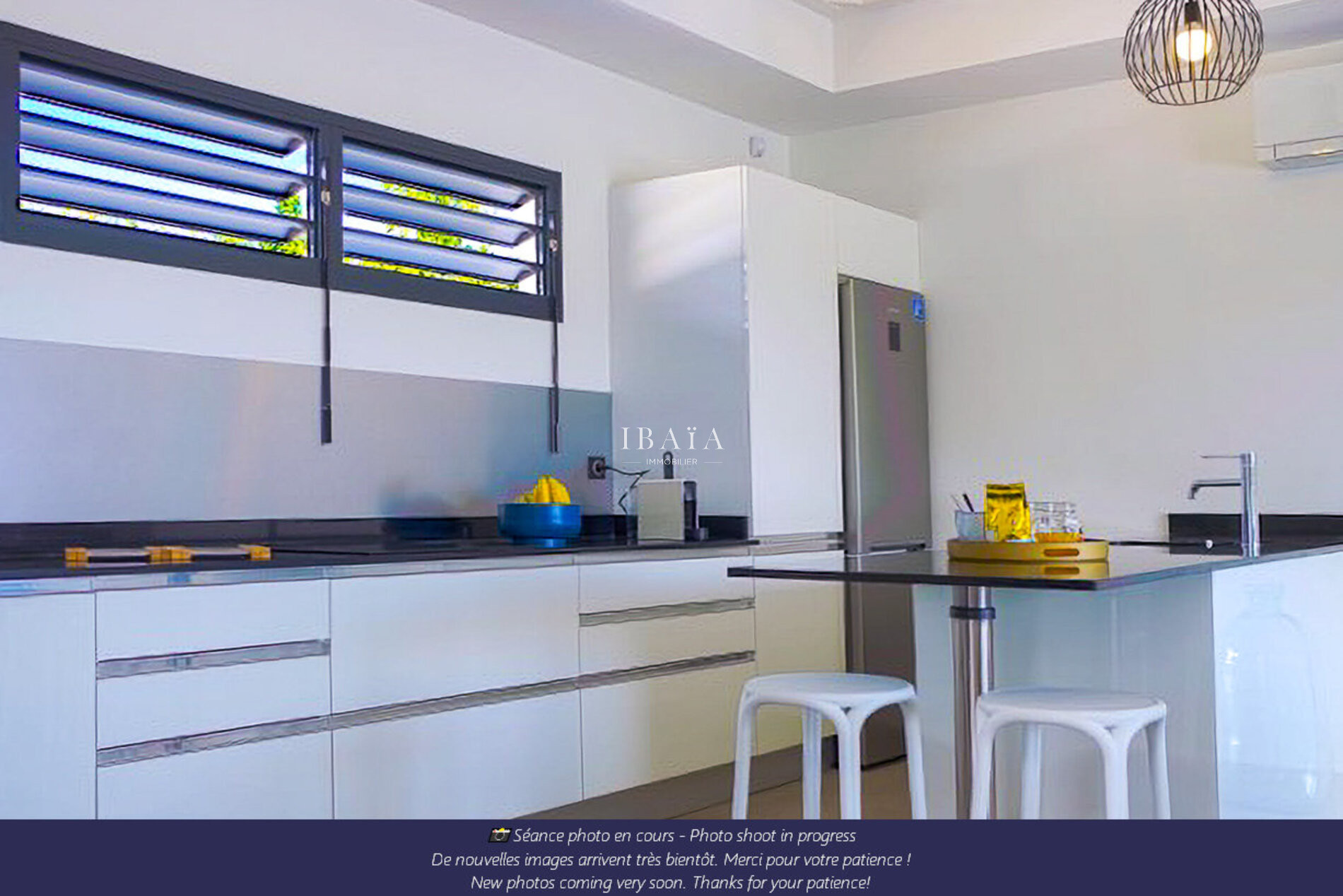 Outside, the terrace stands out as the heart of this villa. Protected by a bioclimatic pergola, it is the ideal place to enjoy meals with family or aperitifs with friends. The punch bin with its panorama of the sea, the surrounding nature and the islands of Guadeloupe, promises moments of absolute relaxation.