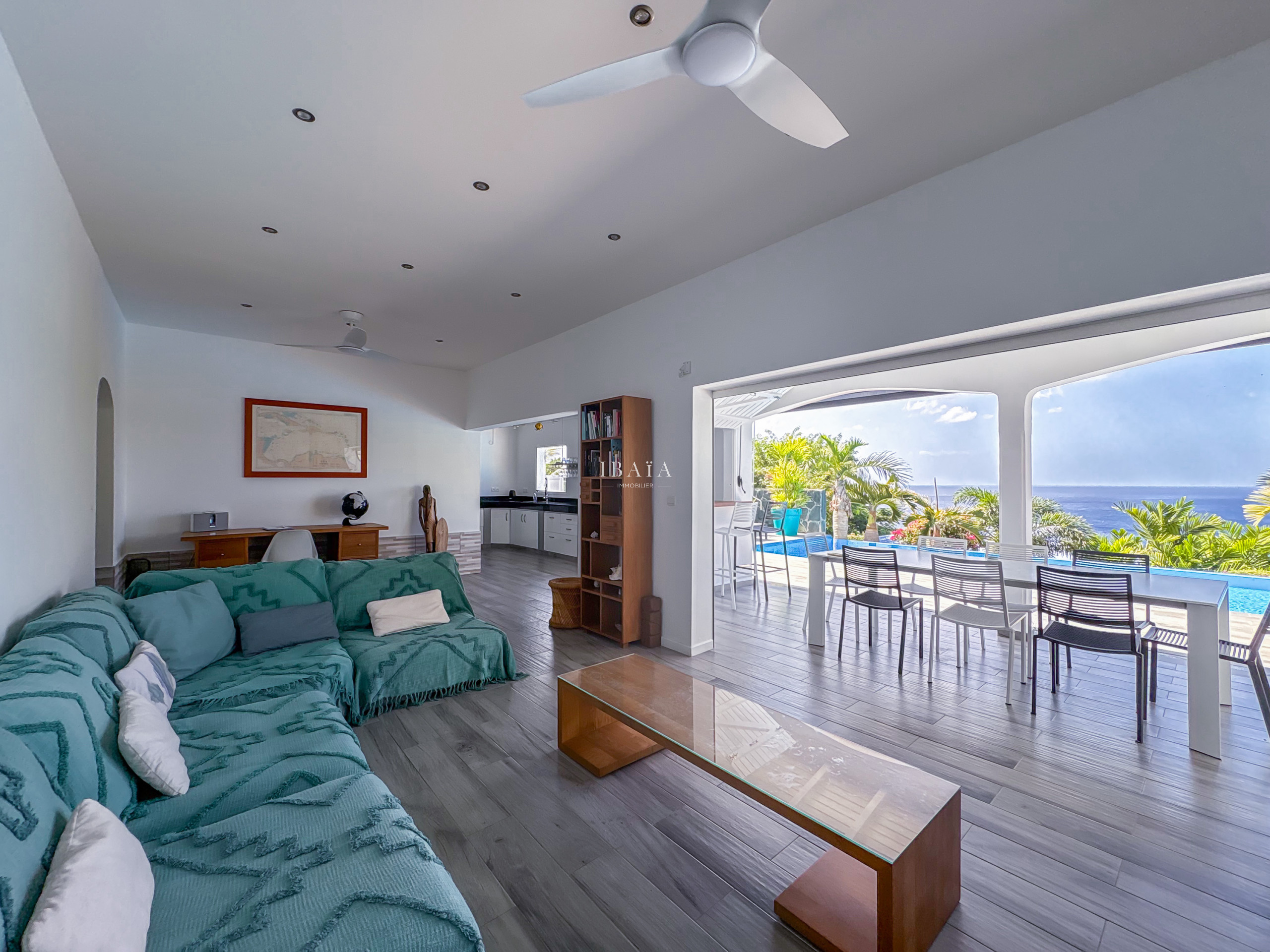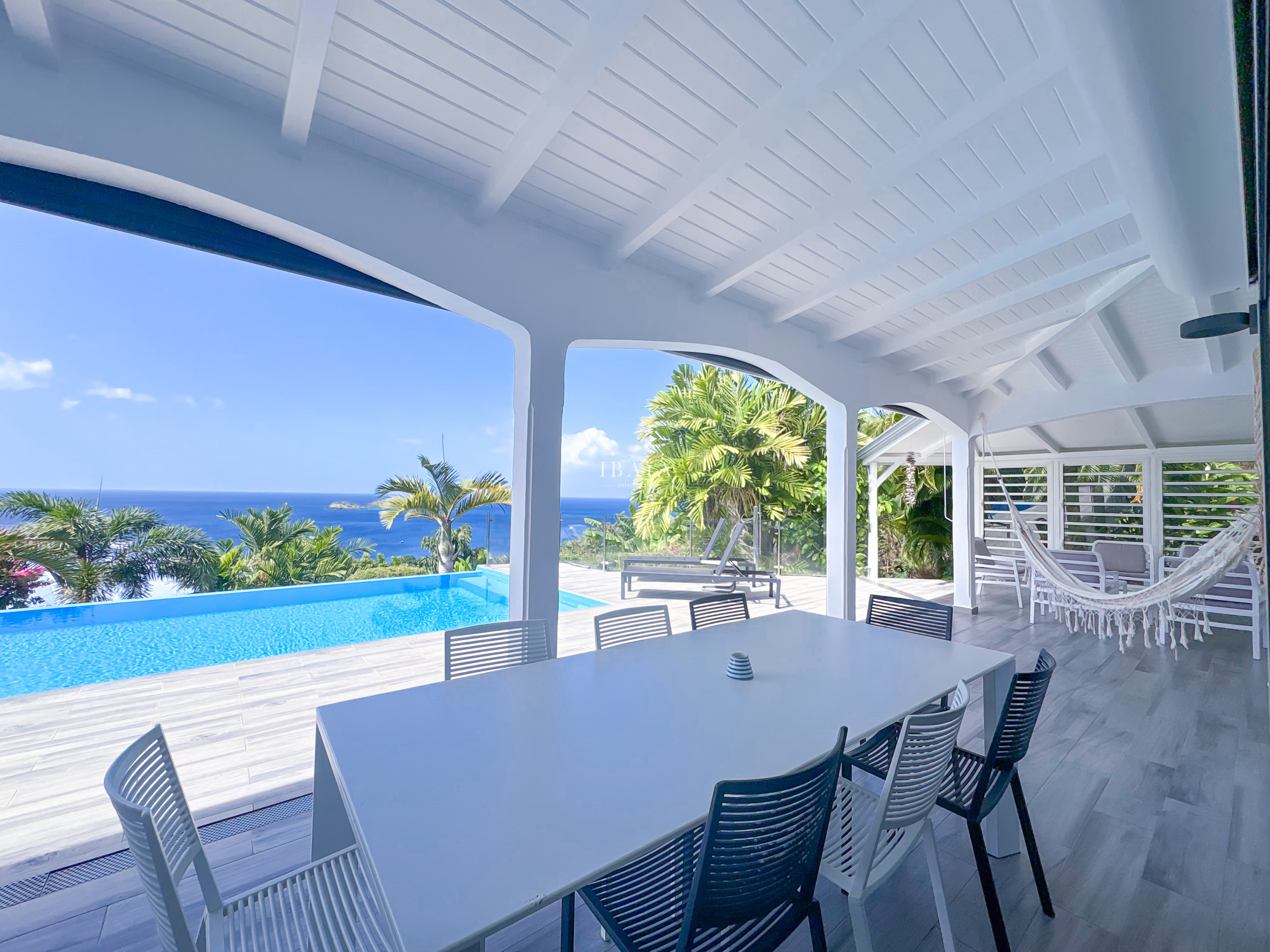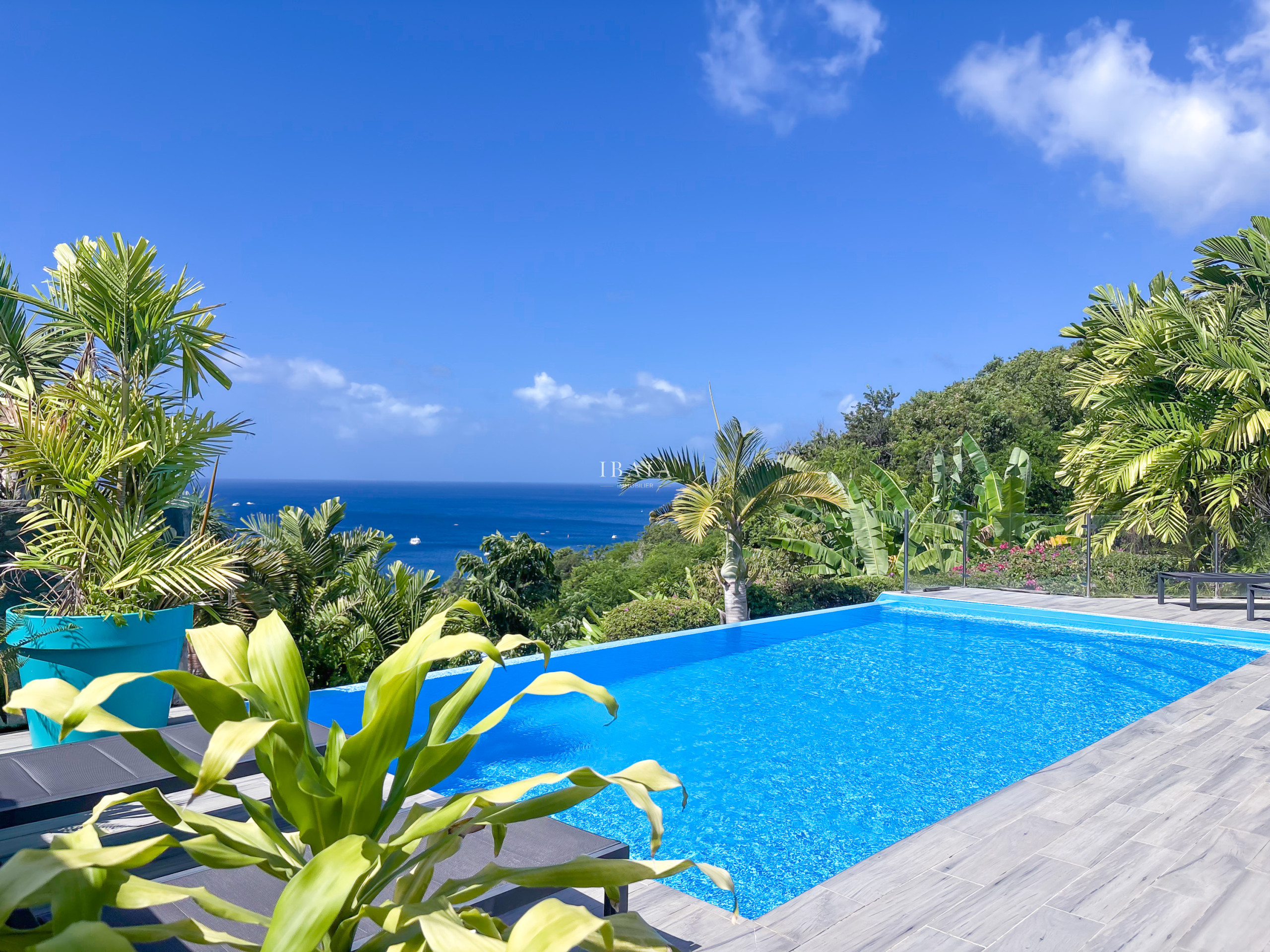 Dominando el mar azul de la Reserva Cousteau, la Villa Sunset Caraíbes encarna la elegancia tropical en toda su esplendor.