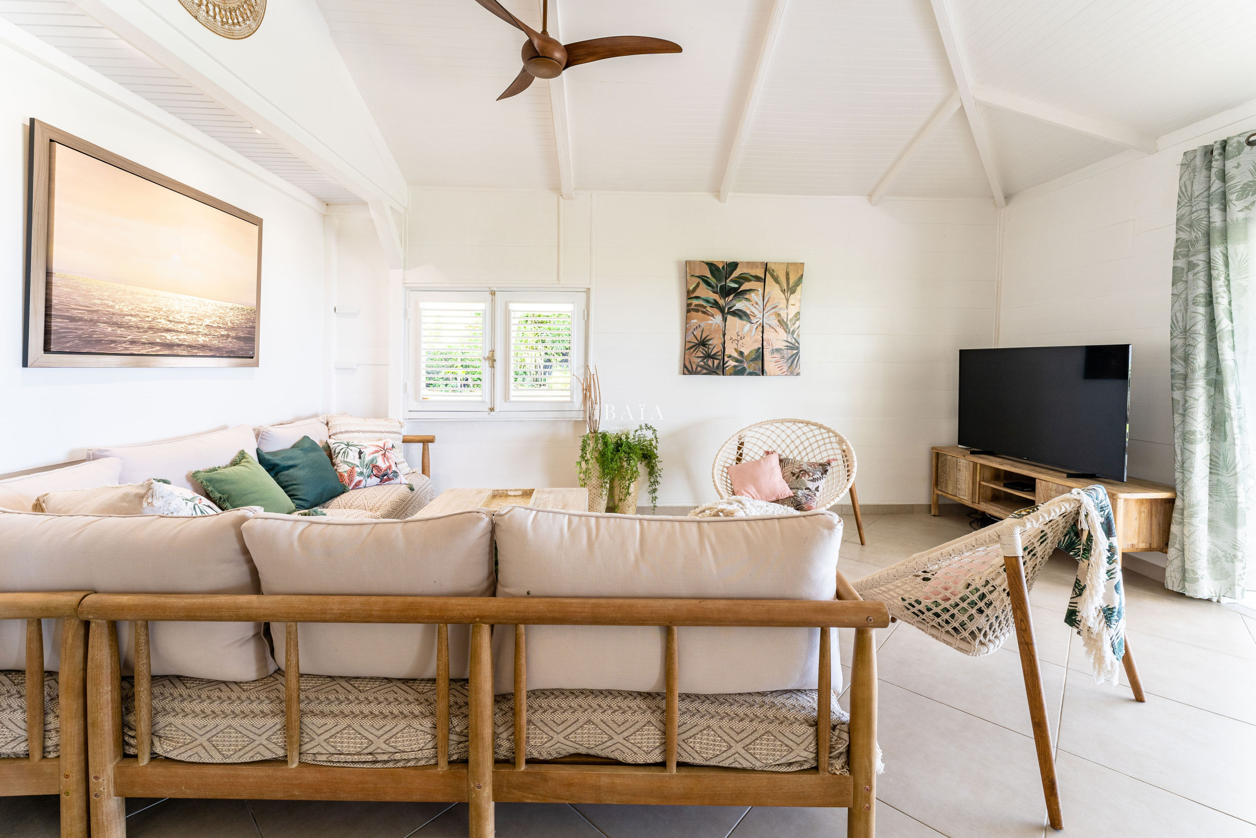 · Una gran sala de estar ventilada y relajante con vistas a las alturas de Marie-Galante