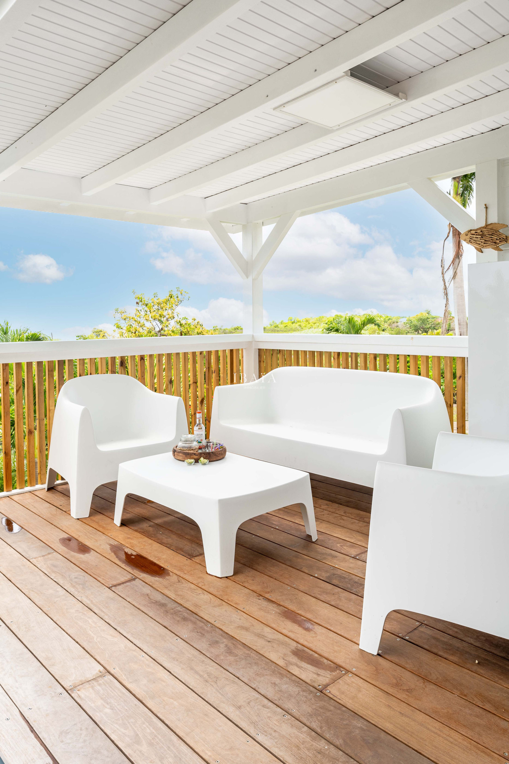 · Un carbet con salón de jardín, perfecto para relajarse a la sombra mientras se admira el mar.