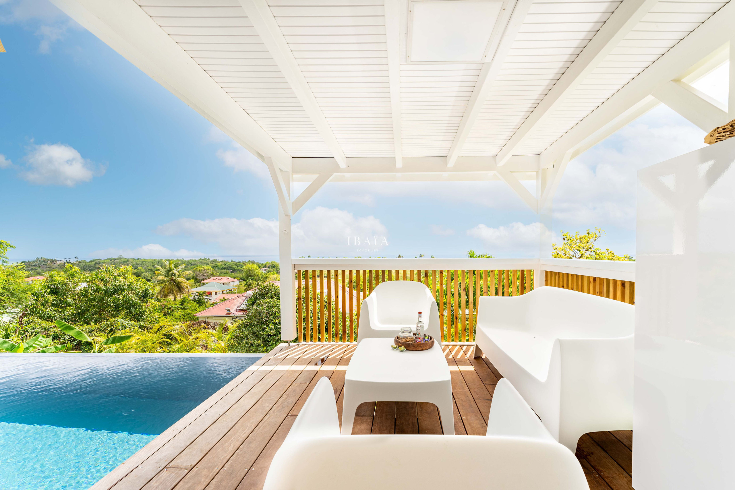 Déjese envolver por la suavidad hechizante de la Villa Ti Moca, un verdadero refugio donde el tiempo parece detenido desde las alturas de Marie-Galante, la isla de los cien molinos. Desde la terraza sombreada o la magnífica piscina de esta villa refinada, disfrute de una vista sublime sobre Les Saintes, Dominica y Guadalupe