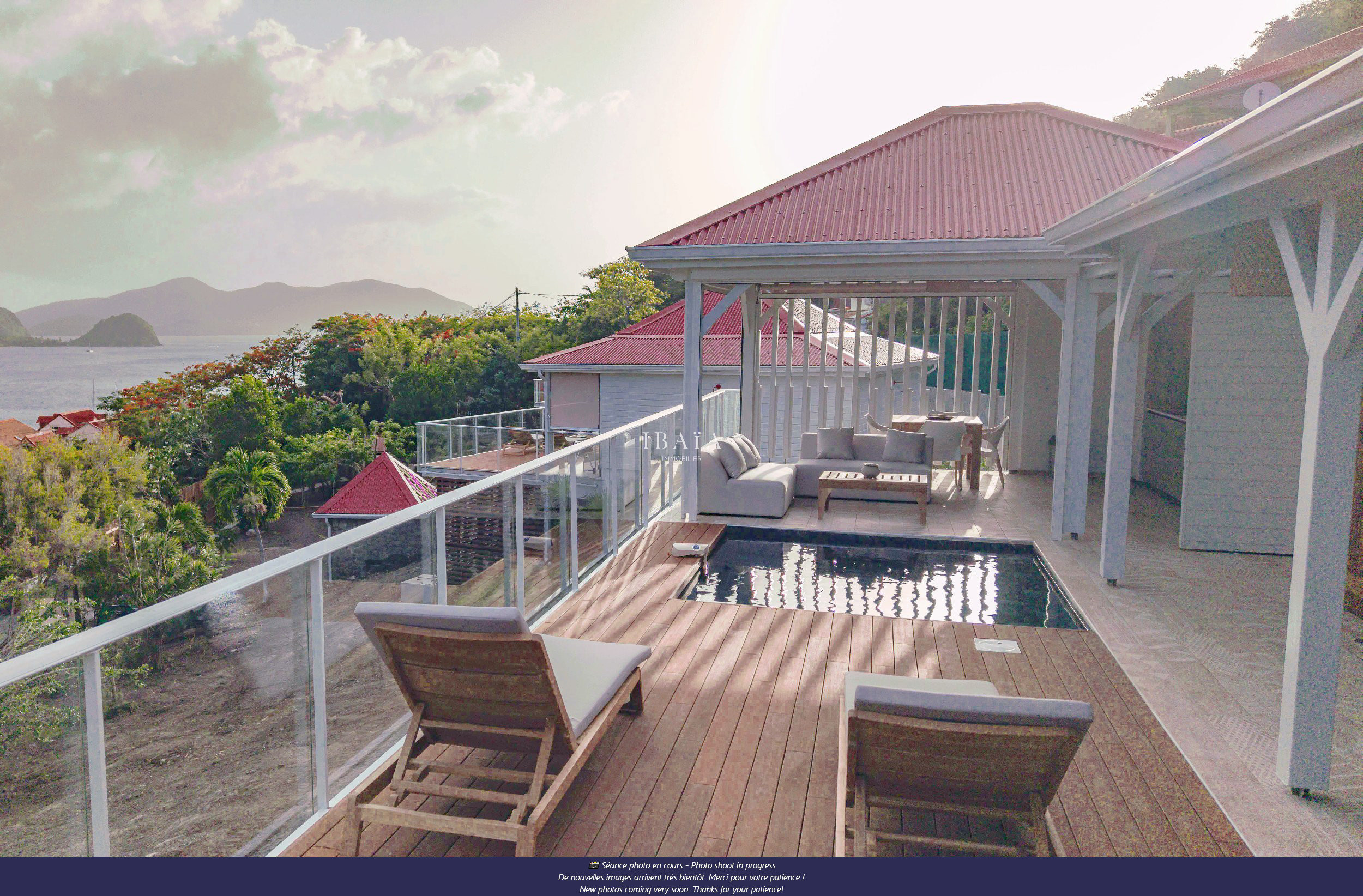 Vista delicada del mar, piscina privada reluciente, solárium bañado por el sol... ¡La Villa Terrasses des Saintes II ofrece un sutil equilibrio entre intimidad y dulzura de vivir, a pocos pasos de la fabulosa Bahía de Marigot y su playa de arena fina!