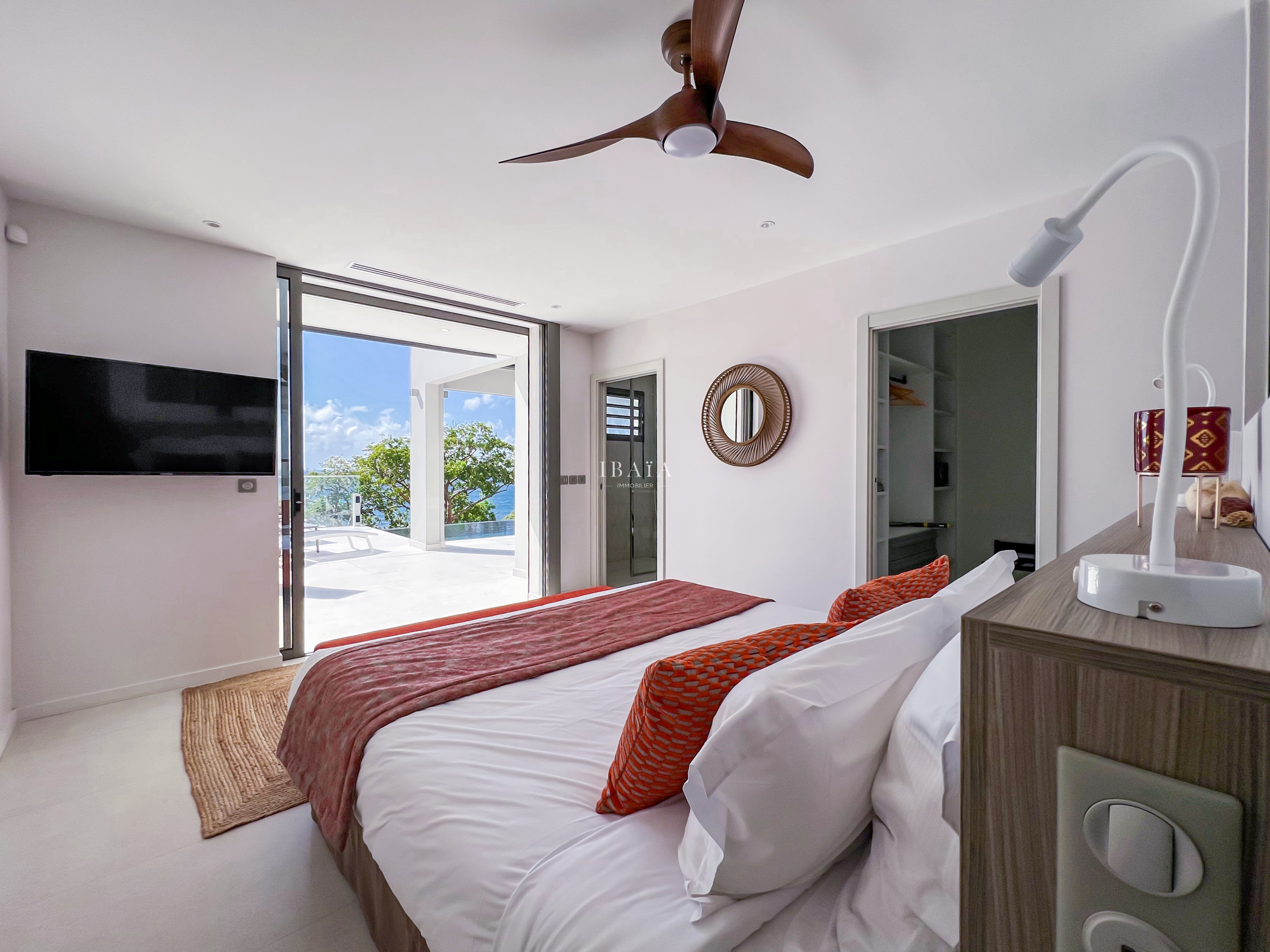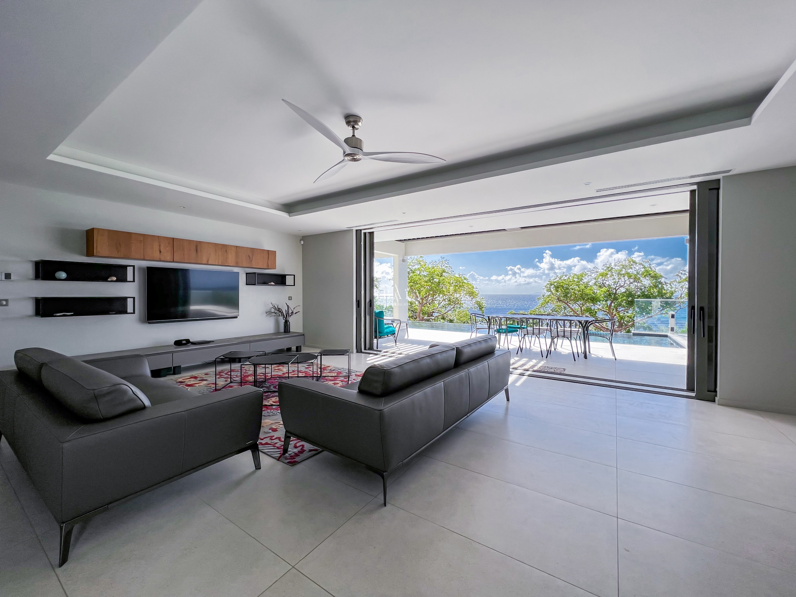 Su arquitectura contemporánea lo hace completamente abierto al exterior. De hecho, una amplia terraza cubierta, decorada con una piscina privada y sus jardines, le invita a aprovechar al máximo el clima soleado de Guadalupe. Ofreciendo así un ambiente ideal para relajarse y recargar pilas.