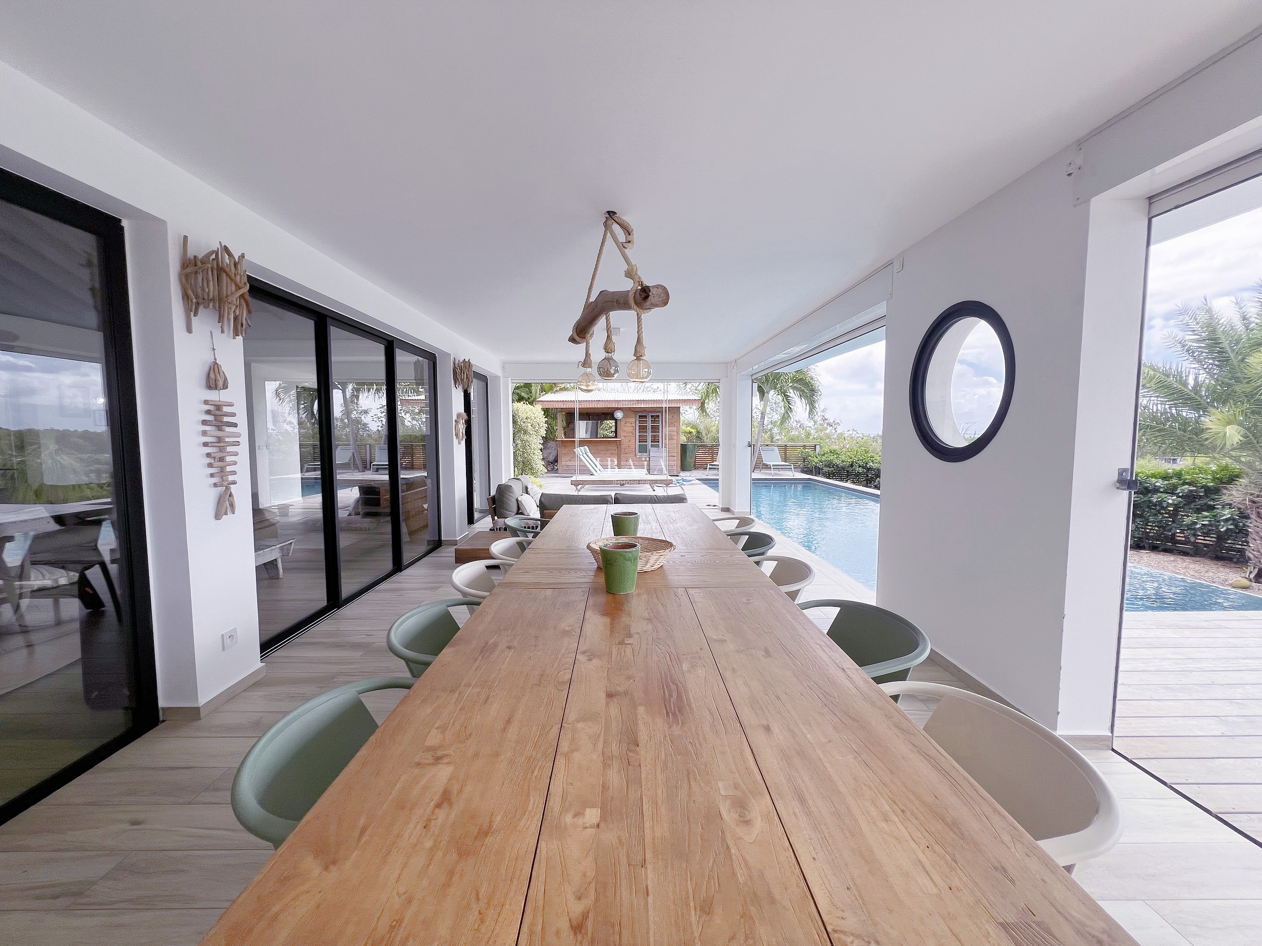 Pensada para acoger cómodamente hasta 10 personas, la villa despliega sus espacios luminosos en 2 niveles. Las líneas depuradas de su arquitectura, su mobiliario de alta gama y sus equipamientos de última generación hacen de este un lugar donde todo está concebido para realzar su estancia. En la intersección del confort moderno y la suavidad caribeña, la Villa Rives d'Or le invita a saborear el arte de vivir con los pies en el agua.