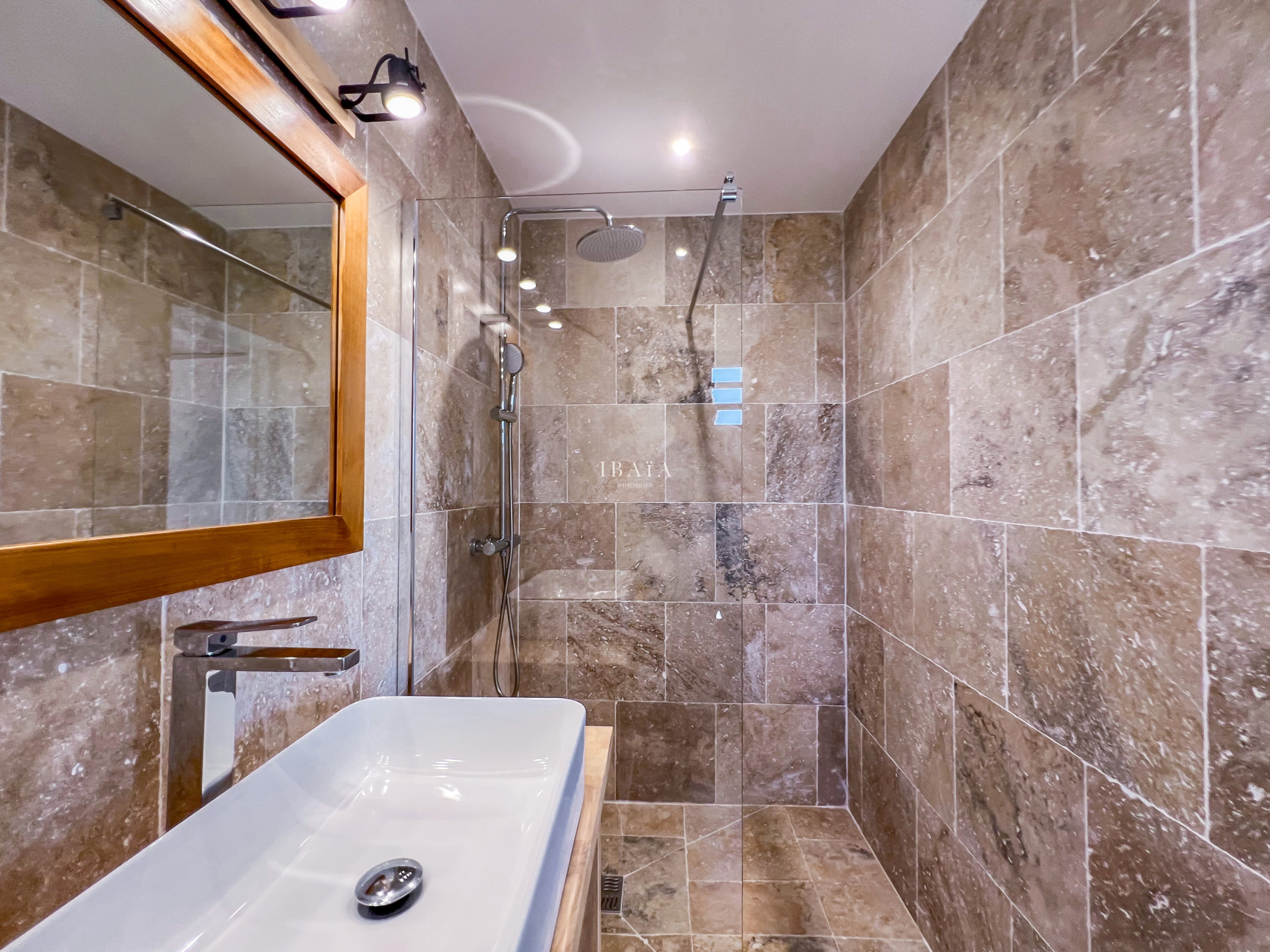 En el exterior, quedará encantado con la piscina privada (5x4 m), rodeada de un área de relajación. Ya sea desde la piscina o desde la terraza, disfrute de una vista despejada al mar, una verdadera invitación a escapar.