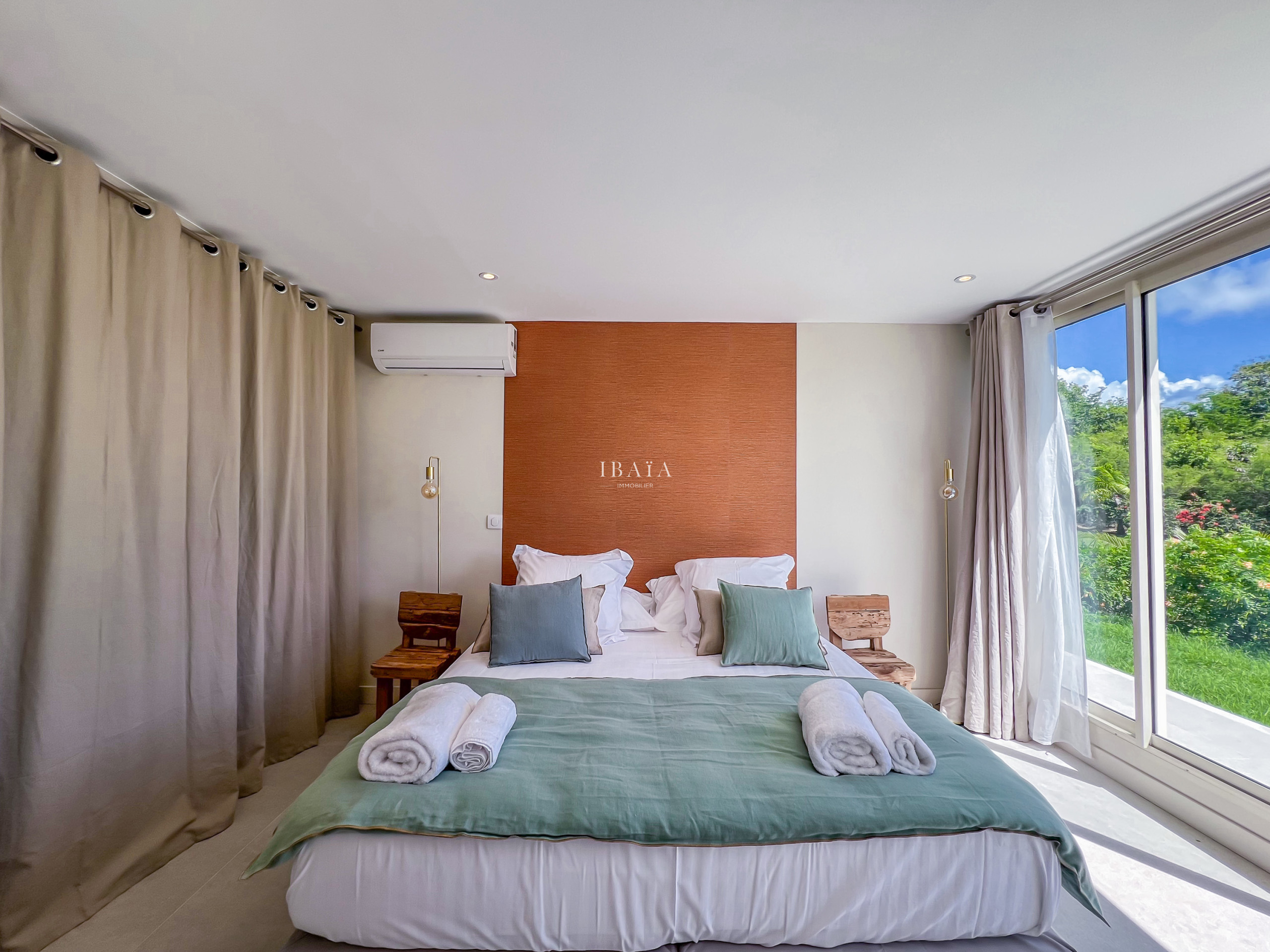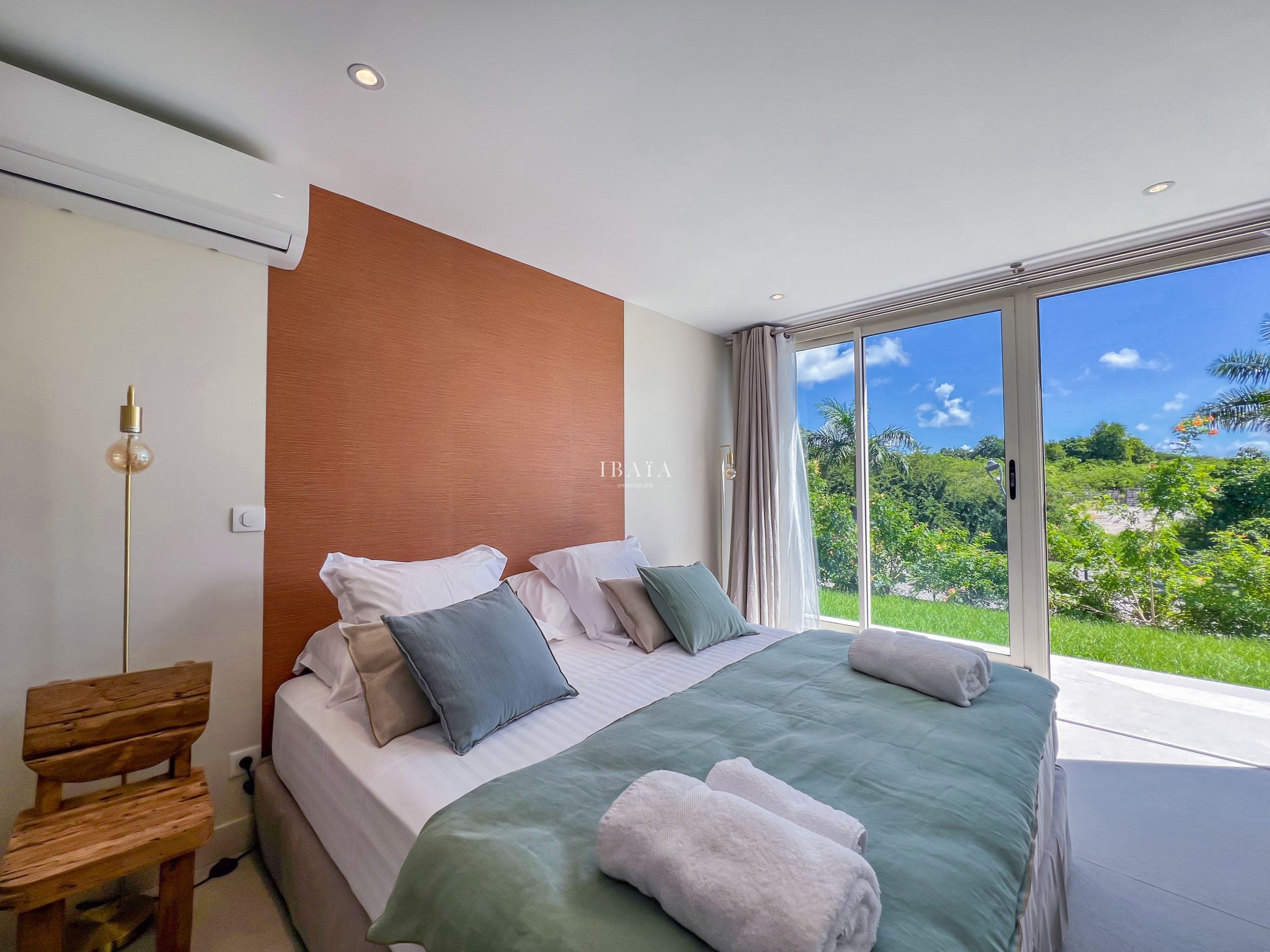 Pensada para acoger cómodamente hasta 10 personas, la villa despliega sus espacios luminosos en 2 niveles. Las líneas depuradas de su arquitectura, su mobiliario de alta gama y sus equipamientos de última generación hacen de este un lugar donde todo está concebido para realzar su estancia. En la intersección del confort moderno y la suavidad caribeña, la Villa Rives d'Or le invita a saborear el arte de vivir con los pies en el agua.
