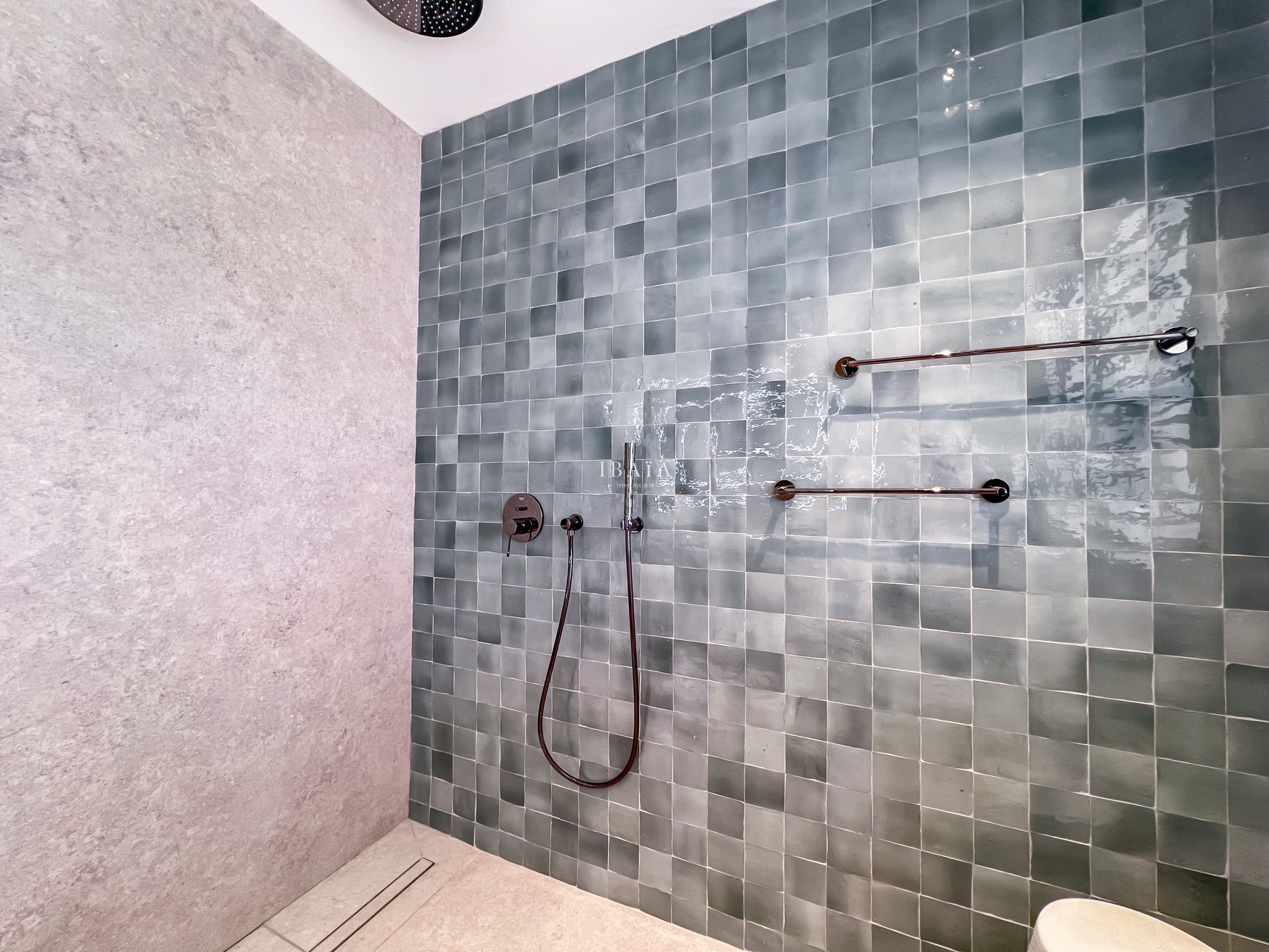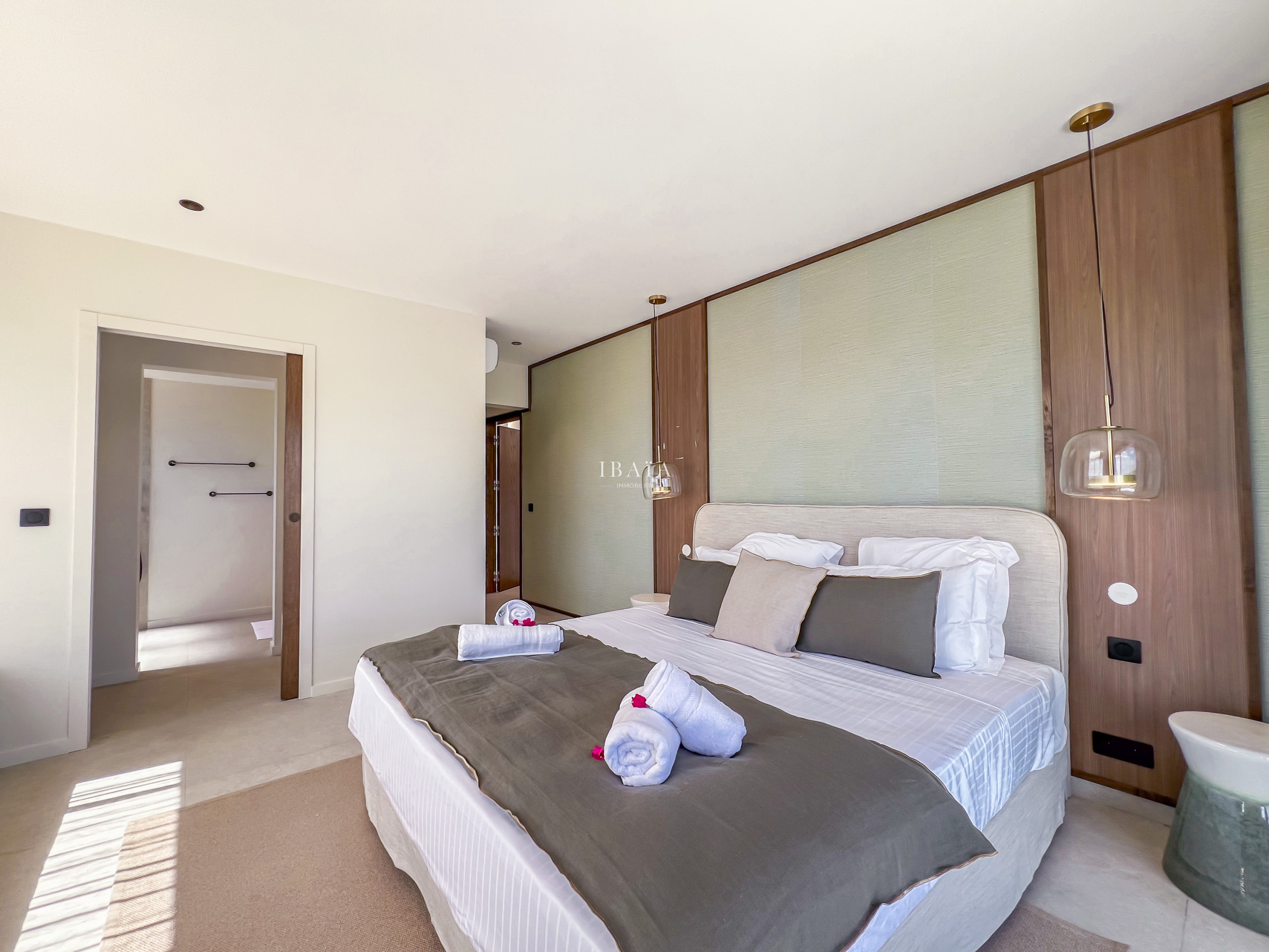 La villa dispone de 4 dormitorios con aire acondicionado, incluidas 2 master suites con su propio cuarto de baño con ducha, espacio de almacenamiento y acceso directo a la piscina. Otros dos dormitorios, uno doble y otro con dos camas individuales, comparten un baño.