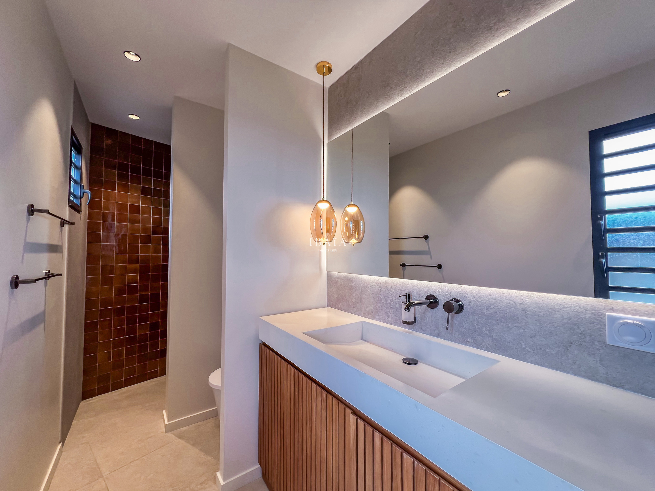 Pensada como una oda al bienestar tropical y recientemente terminada, la Villa Rives Marines combina el refinamiento de las grandes casas contemporáneas y la serenidad de un refugio paradisíaco. Dotada de 4 habitaciones espaciosas, una cocina americana generosamente equipada y una piscina de desbordamiento que domina el azul, esta villa excepcional ofrece un marco ideal para estancias entre comodidad, intimidad y libertad.