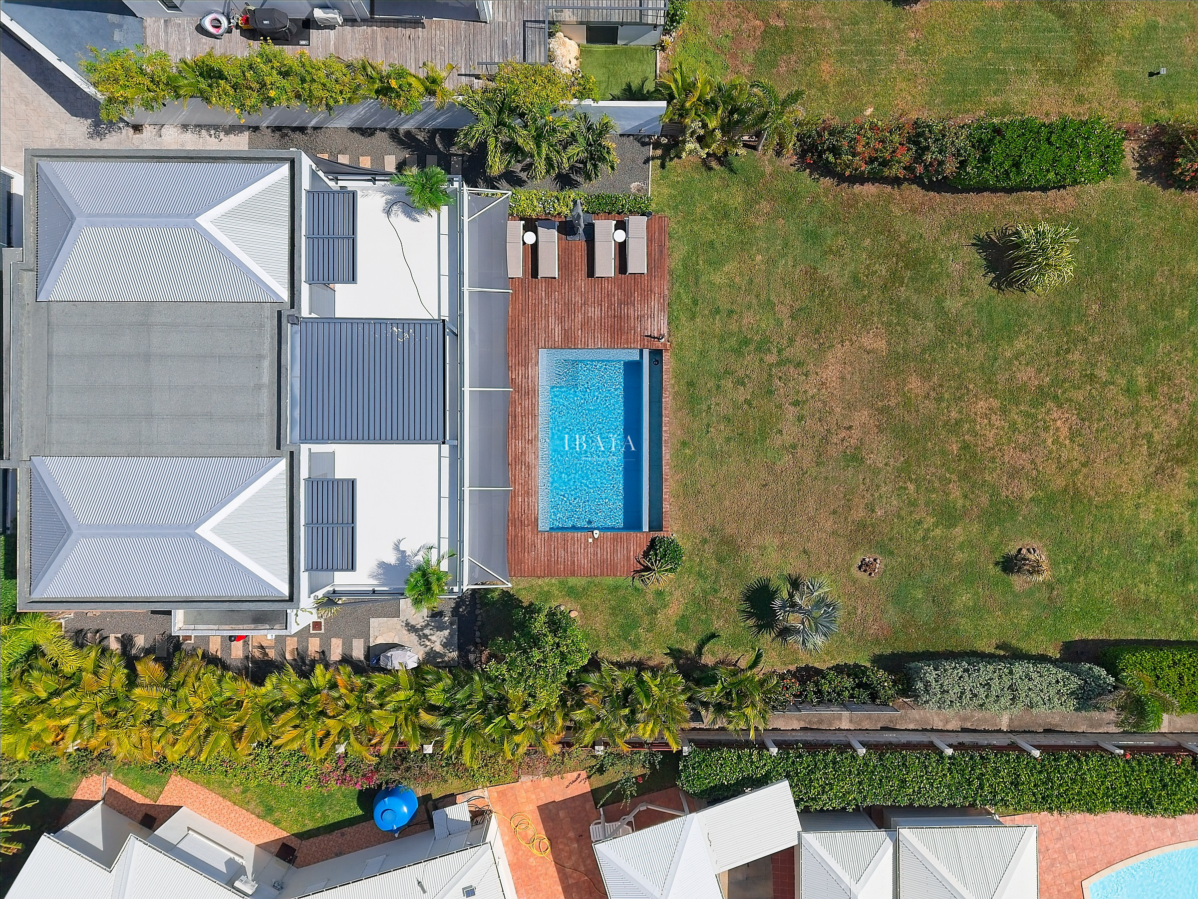 Su arquitectura contemporánea lo hace completamente abierto al exterior. De hecho, una amplia terraza cubierta, decorada con una piscina privada y sus jardines, le invita a aprovechar al máximo el clima soleado de Guadalupe. Ofreciendo así un ambiente ideal para relajarse y recargar pilas.