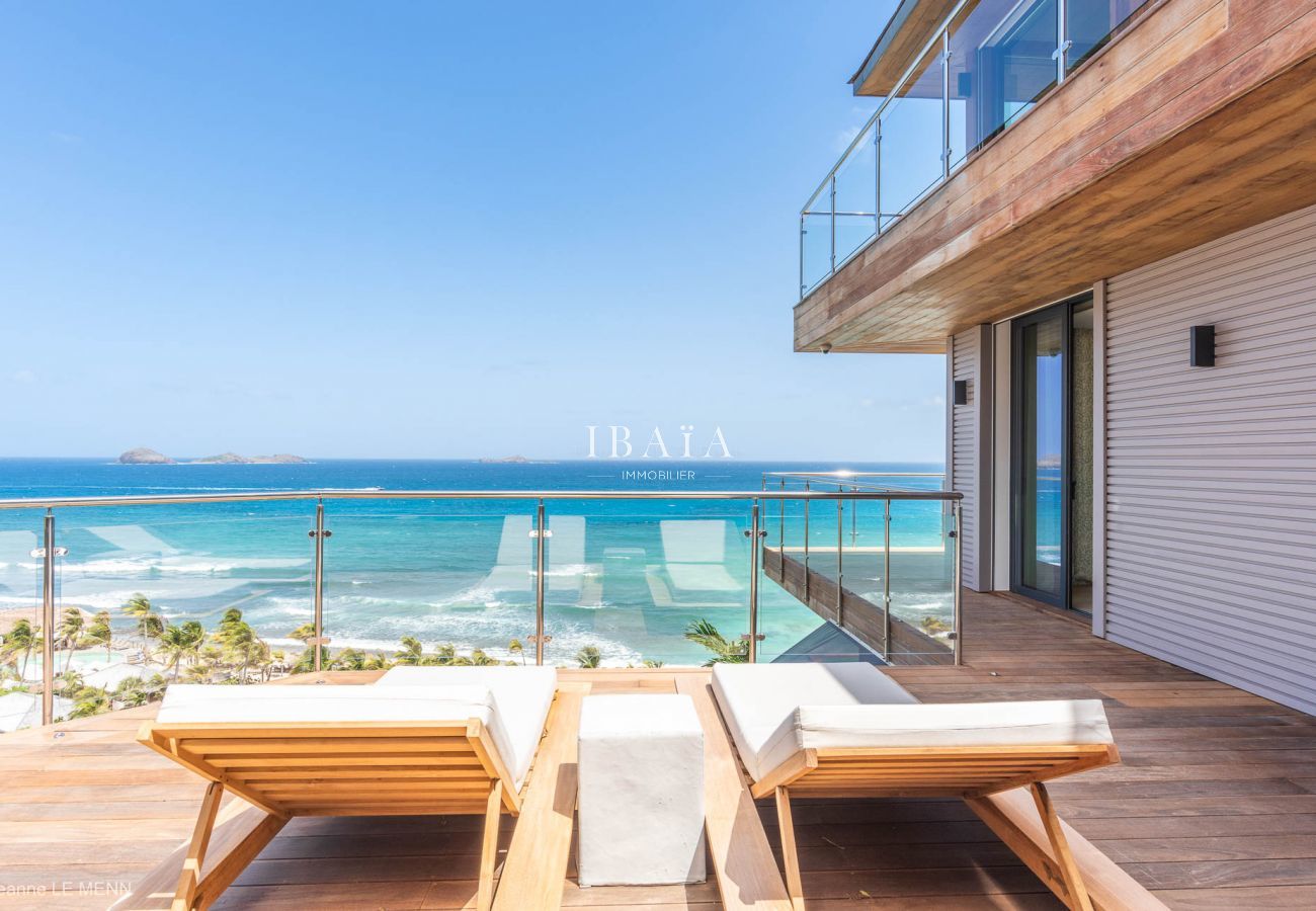La villa en San Bartolomé posee 7 dormitorio(s) y capacidad para 14 personas. Alojamiento de 300 m² amueblado con gusto y moderno, con vistas al mar. Se encuentra a 1 km del restaurante "Restaurant Hotel Manapani", 2 km de la playa de arena "St Jean beach & Flamands beach", 2 km de la ciudad "Gustavia", 2 km del supermercado "Marche U, AMC supermarkets in St Jean", 2 km del aeropuerto "St Jean airport" y está ubicado en una zona ideal para familias y junto al mar.Dispone de plancha, caja fuerte, acceso internet (wifi), secador, aire acondicionado en todos los dormitorios, piscina climatizada privada, 9 Televisores, tv satelite (Idiomas: Inglés, Francés).La cocina independiente, de gas, está equipada con nevera, microondas, horno, congelador, lavavajillas, vajilla/cubertería, utensilios/cocina, cafetera, tostadora, hervidor de agua y exprimidor.