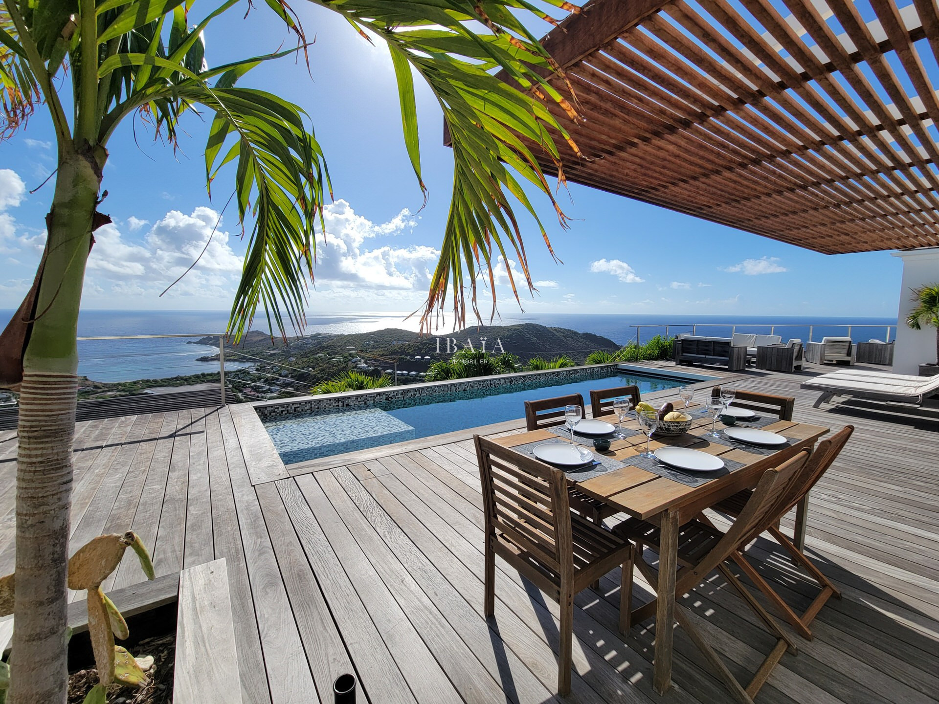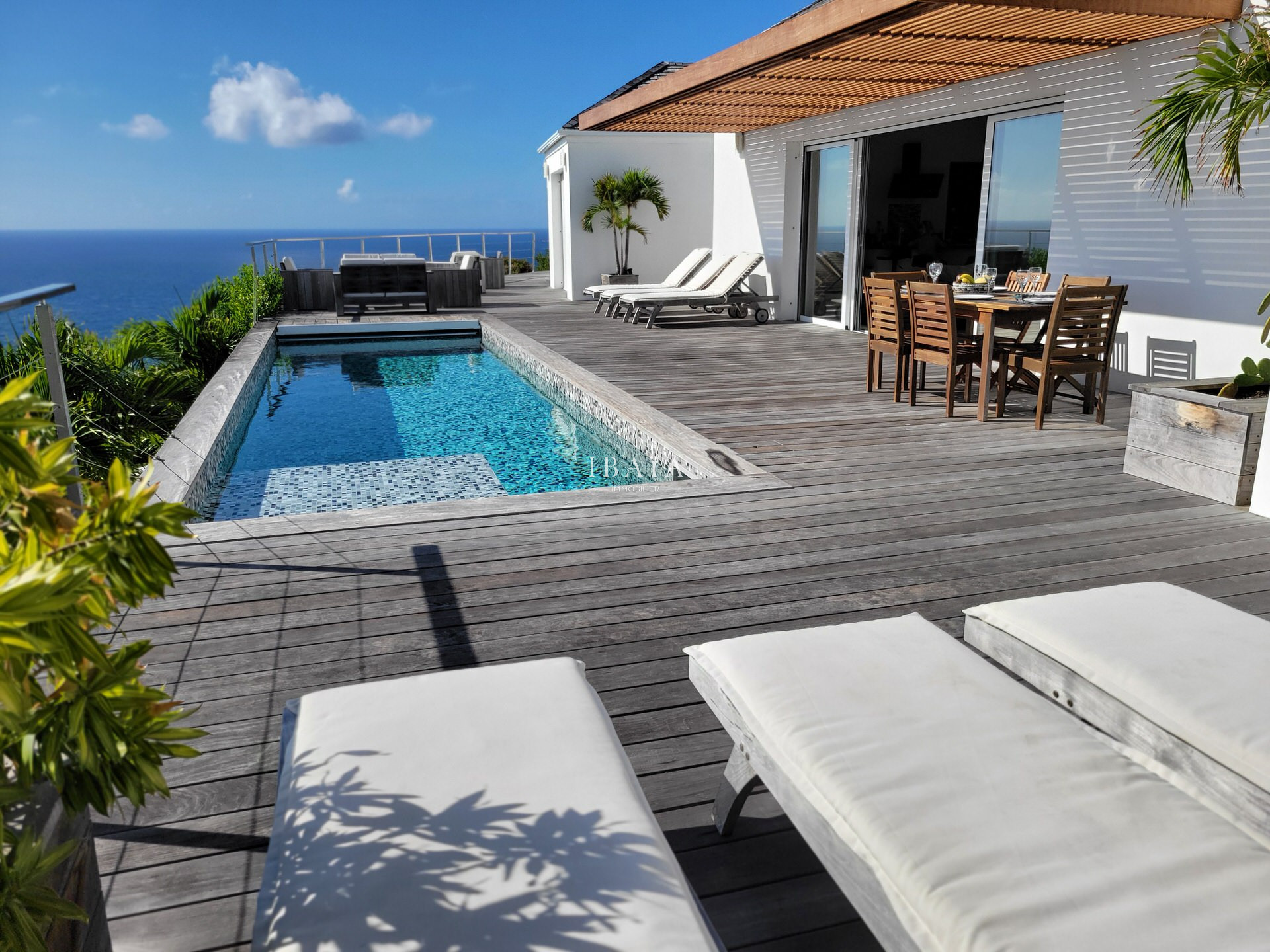 La villa en San Bartolomé posee 3 dormitorio(s) y capacidad para 6 personas. Alojamiento de 100 m² bonito y de recién construcción, con vistas al mar. Se encuentra a 0 m de la playa de roca, 2 km del restaurante "Restaurants at Mango and Christo at Hotel Christopher", 3 km de la playa de arena "Lorient Beach", 3 km del supermercado "AMC, Marche U Express Oasis, Jojo grocery stores and bakeries", 7 km del aeropuerto "St Jean airport", 7 km de la ciudad "Gustavia" y está ubicado en una zona ideal para familias y junto al mar.Dispone de acceso internet (wifi), aire acondicionado en todo el alojamiento, piscina climatizada privada, parking aire libre en mismo edificio.La cocina americana, de gas, está equipada con nevera, microondas, horno, congelador, lavavajillas, vajilla/cubertería, utensilios/cocina, cafetera, tostadora, hervidor de agua y exprimidor.