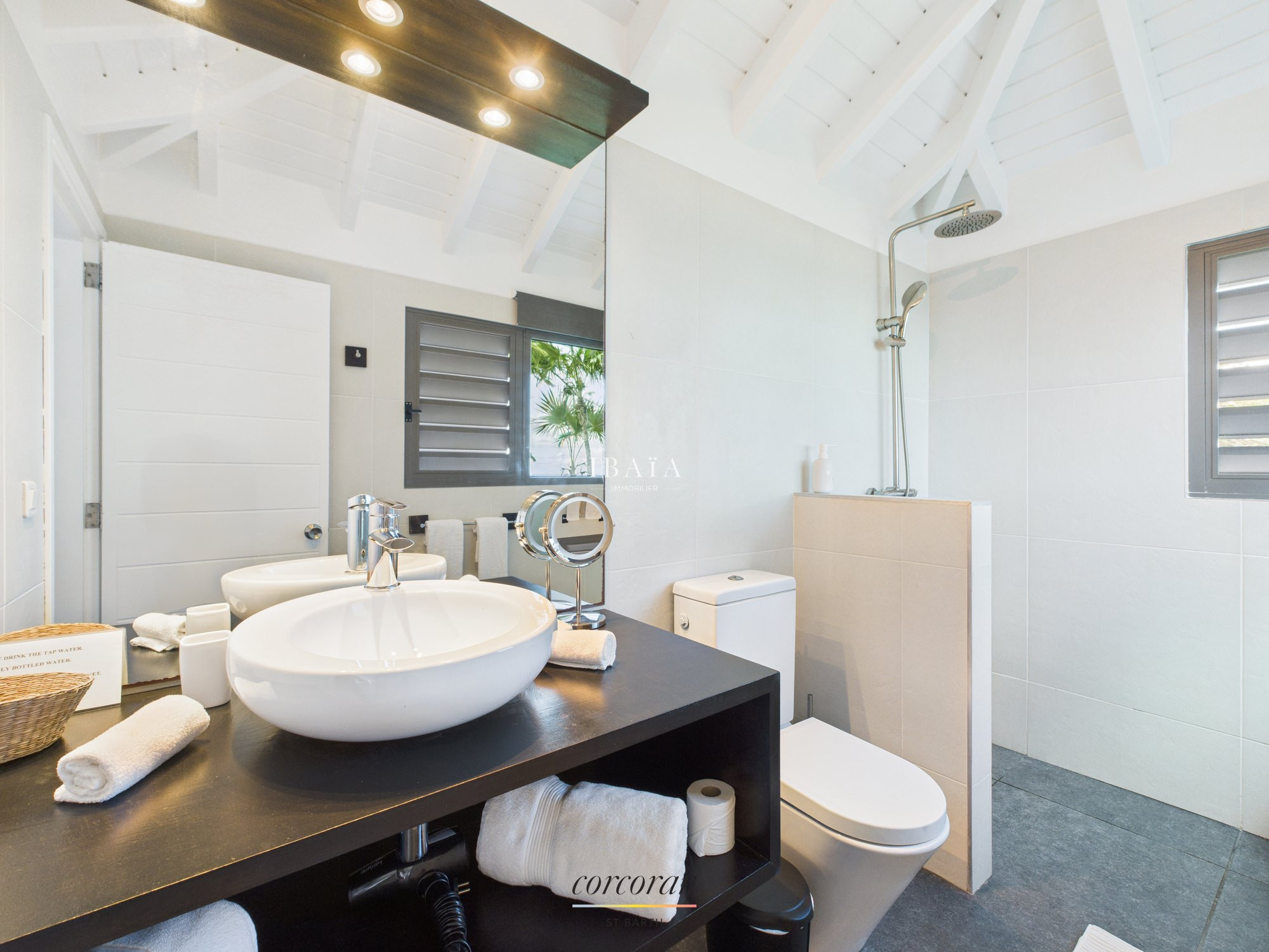 La villa en San Bartolomé posee 3 dormitorio(s) y capacidad para 6 personas. Alojamiento de 220 m² amueblado con gusto y muy luminoso, con vistas al mar y a la piscina. Se encuentra a 5 km de la playa de arena "Lorient", 5 km del supermercado "Oasis Lorient", 8 km de la ciudad "St Jean" y está ubicado en una zona ideal para familias y junto al mar.Dispone de 120 m² de terraza, barbacoa, caja fuerte, acceso internet (wifi), secador, aire acondicionado en todo el alojamiento, piscina climatizada privada, parking aire libre en mismo edificio, Televisión, tv satelite (Idiomas: Francés).La cocina, está equipada con nevera, microondas, horno, congelador, lavavajillas, vajilla/cubertería, utensilios/cocina, cafetera, tostadora, hervidor de agua y exprimidor.