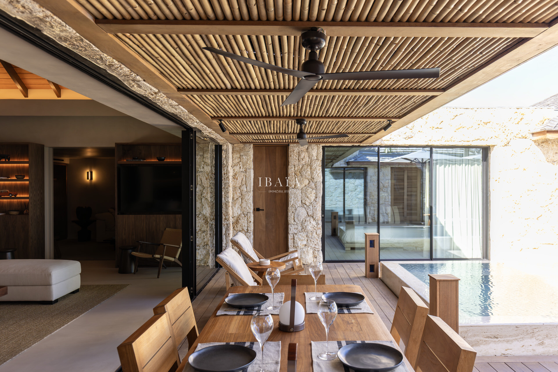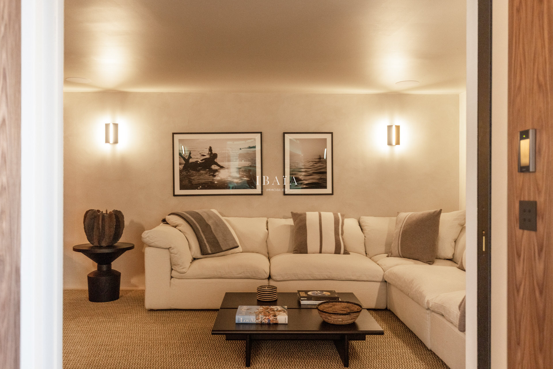 La villa en San Bartolomé posee 4 dormitorio(s) y capacidad para 8 personas. Alojamiento de 150 m². Dispone de mobiliario jardín, terraza, plancha, caja fuerte, acceso internet (wifi), secador, aire acondicionado en todo el alojamiento, piscina climatizada privada, parking aire libre en mismo edificio, 4 Televisores, tv satelite (Idiomas: Inglés, Francés).La cocina independiente, de inducción, está equipada con nevera, microondas, horno, congelador, lavavajillas, vajilla/cubertería, utensilios/cocina, cafetera, tostadora, hervidor de agua y exprimidor.