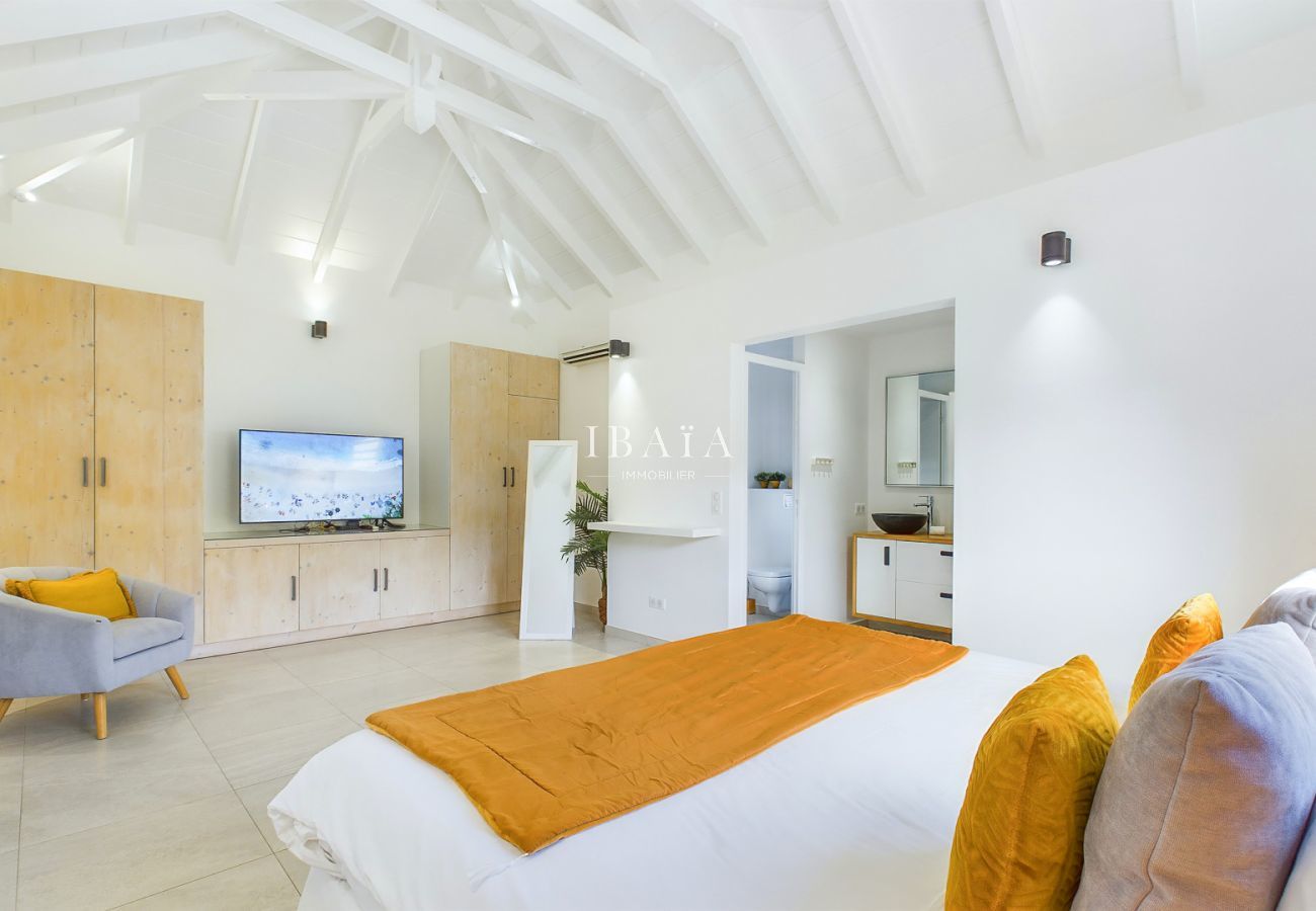 La villa en San Bartolomé posee 3 dormitorio(s) y capacidad para 6 personas. Alojamiento de 100 m² confortable y de recién construcción, situado en primera línea de playa, con vistas al mar. Se encuentra a 1 km del restaurante "La Langouste - Cheval Blanc", 3 km del supermercado "Marche U - St Jean La Savane", 3 km del aeropuerto "St Jean Airport" y está ubicado en una zona ideal para familias y junto al mar.Dispone de acceso internet (wifi), aire acondicionado, piscina climatizada privada, parking aire libre en mismo edificio.La cocina, está equipada con nevera, microondas, horno, congelador, lavavajillas, vajilla/cubertería, utensilios/cocina, cafetera, tostadora, hervidor de agua y exprimidor.