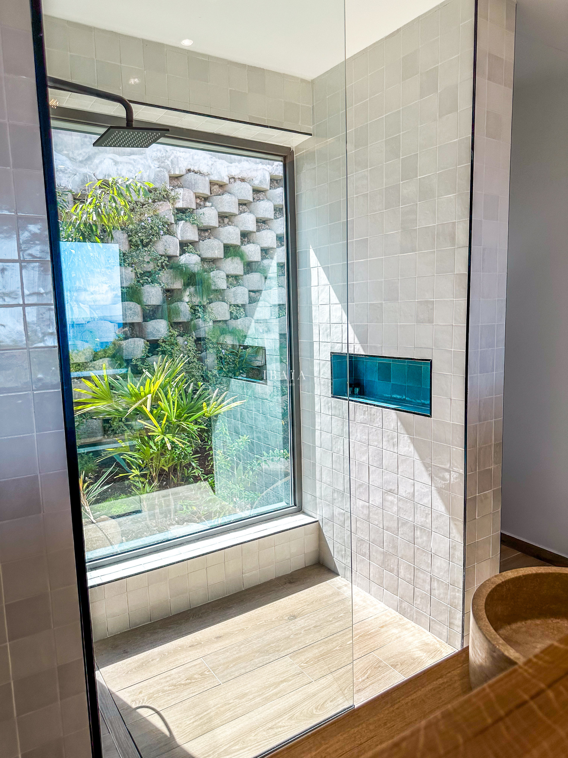 · Salles de bain attentantes à chacune des chambres, sans vis-à-vis, avec une agréable vue mer