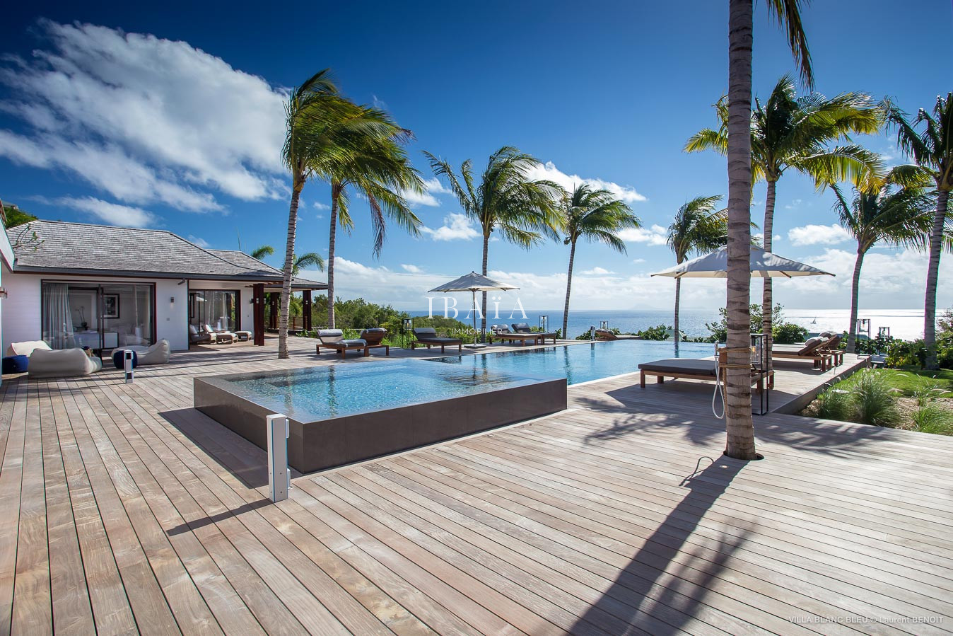 En pénétrant sur le vaste terrain de la Villa Blanc Bleu, vous serez accueilli par une aura d'élégance et d'isolement. Située sur une vaste propriété luxuriante, cette villa offre un havre de tranquillité avec des vues imprenables sur l'océan qui s'étendent à perte de vue.