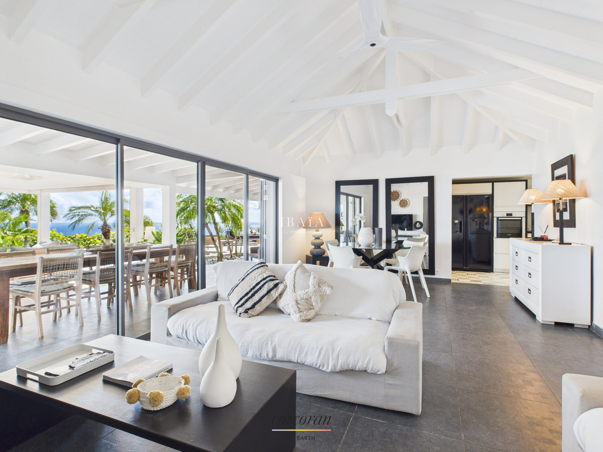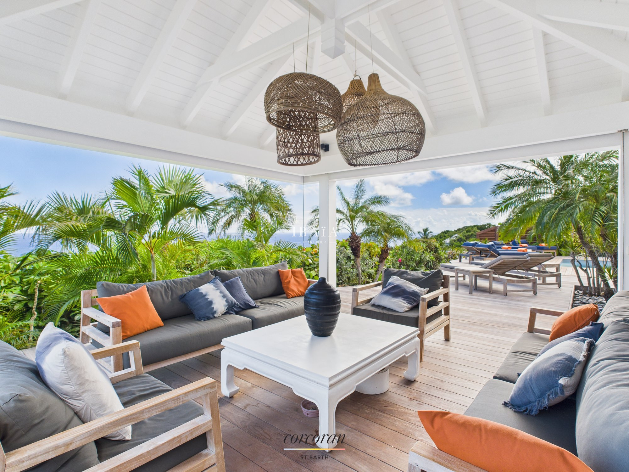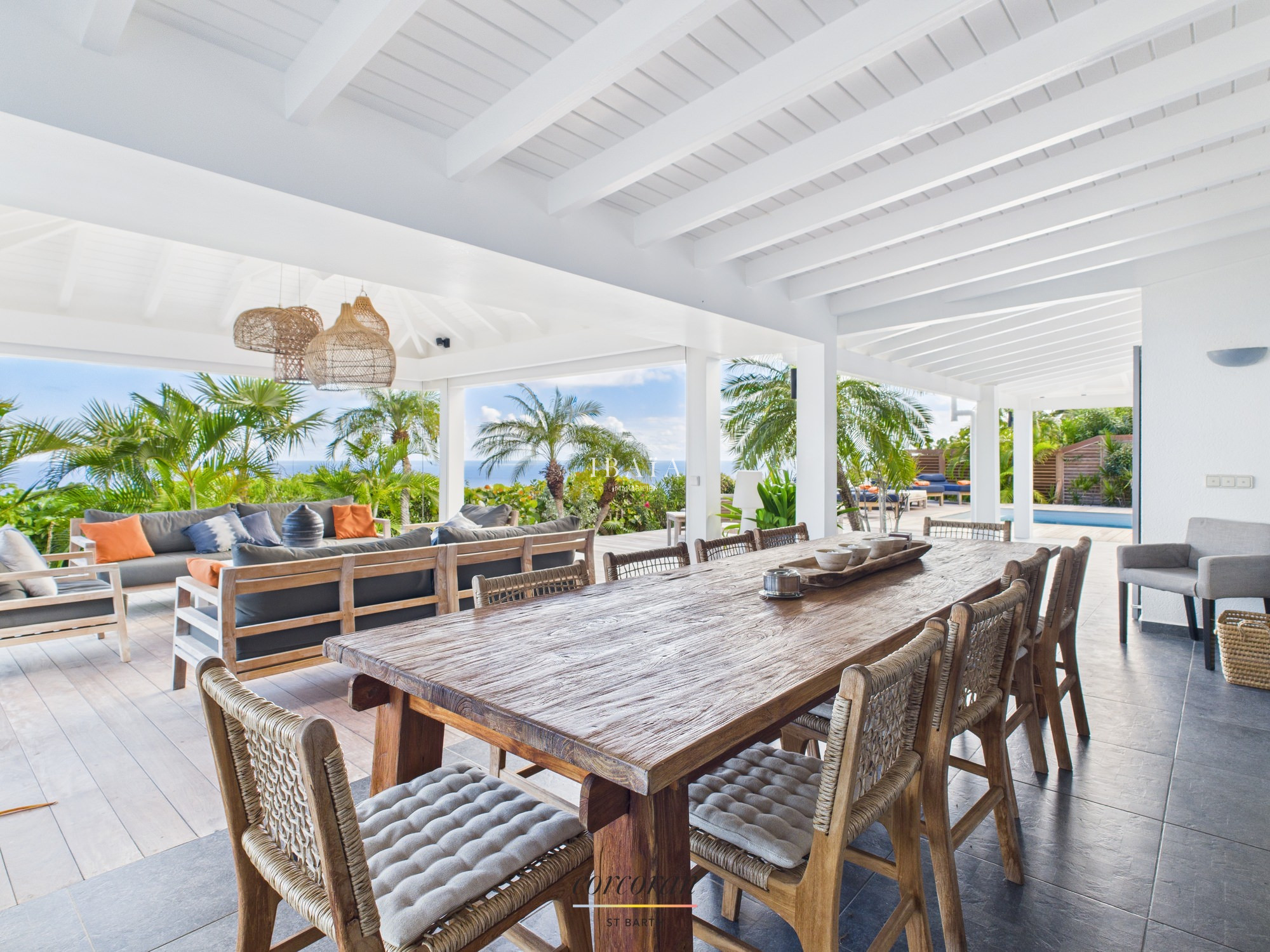 Située à quelques minutes à pied de la plage de Flamands et de l'Hotel Cheval Blanc, la villa entièrement climatisée s'articule sur 2 niveaux.