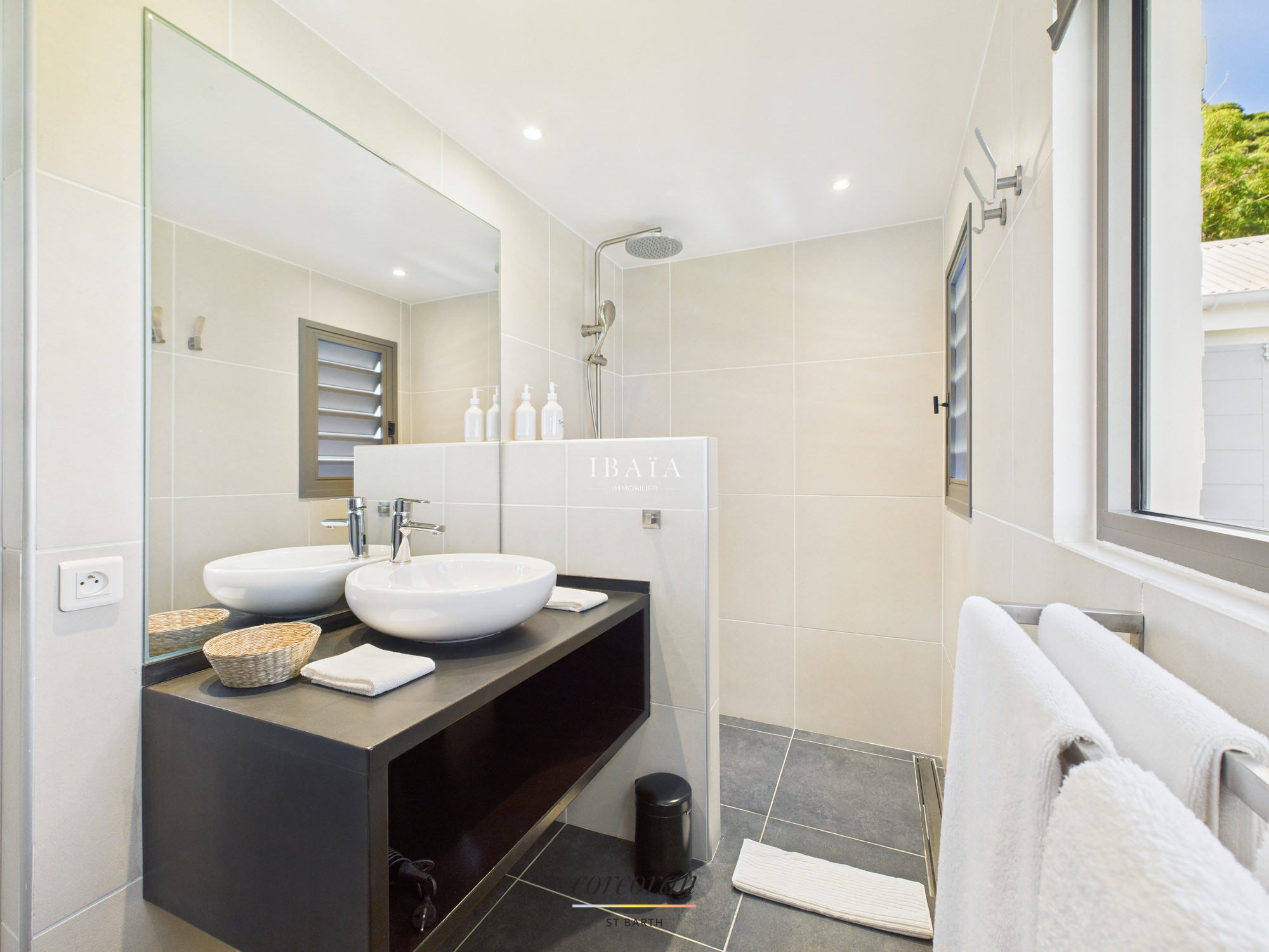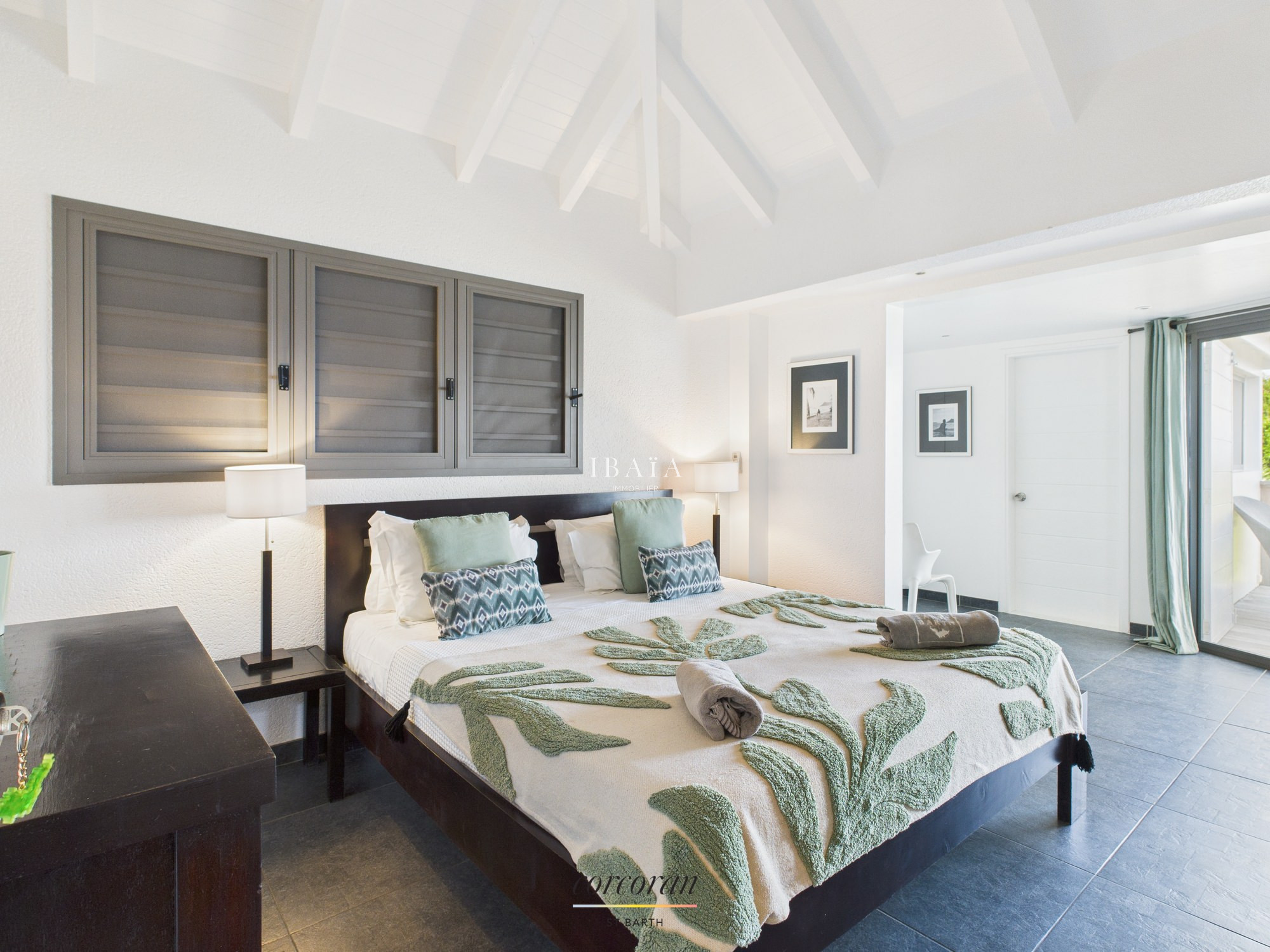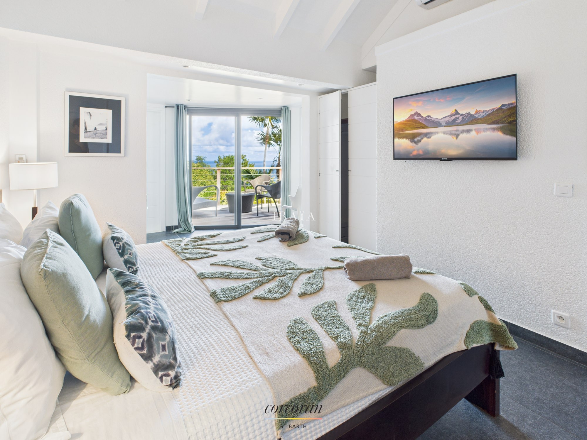 Située à quelques minutes à pied de la plage de Flamands et de l'Hotel Cheval Blanc, la villa entièrement climatisée s'articule sur 2 niveaux.