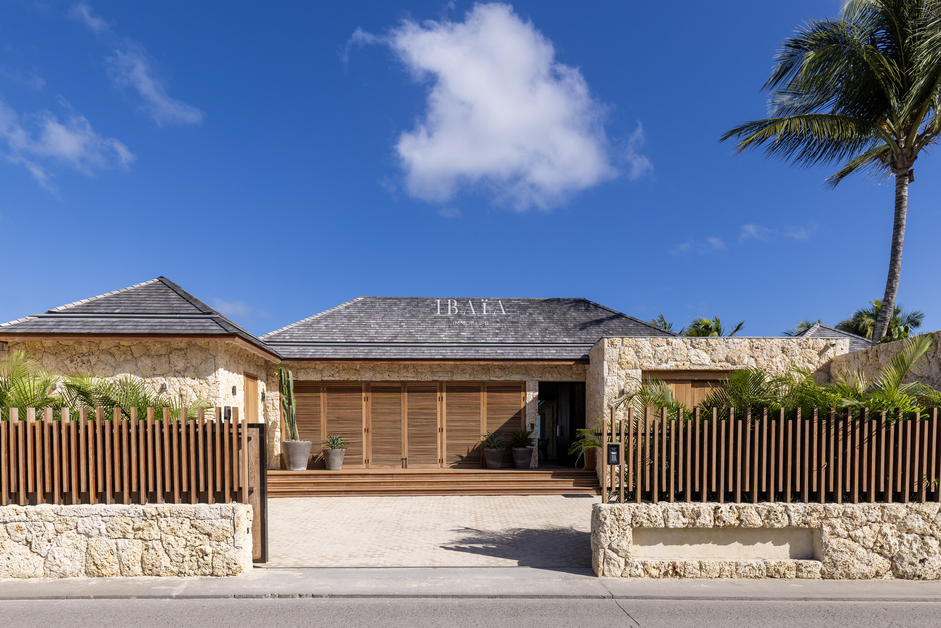 Elle dispose d'une belle vue sur la mer et d'une longue piscine chauffée autour de laquelle d'articule les 4 chambres avec deux chambres de chaque côté de la piscine.