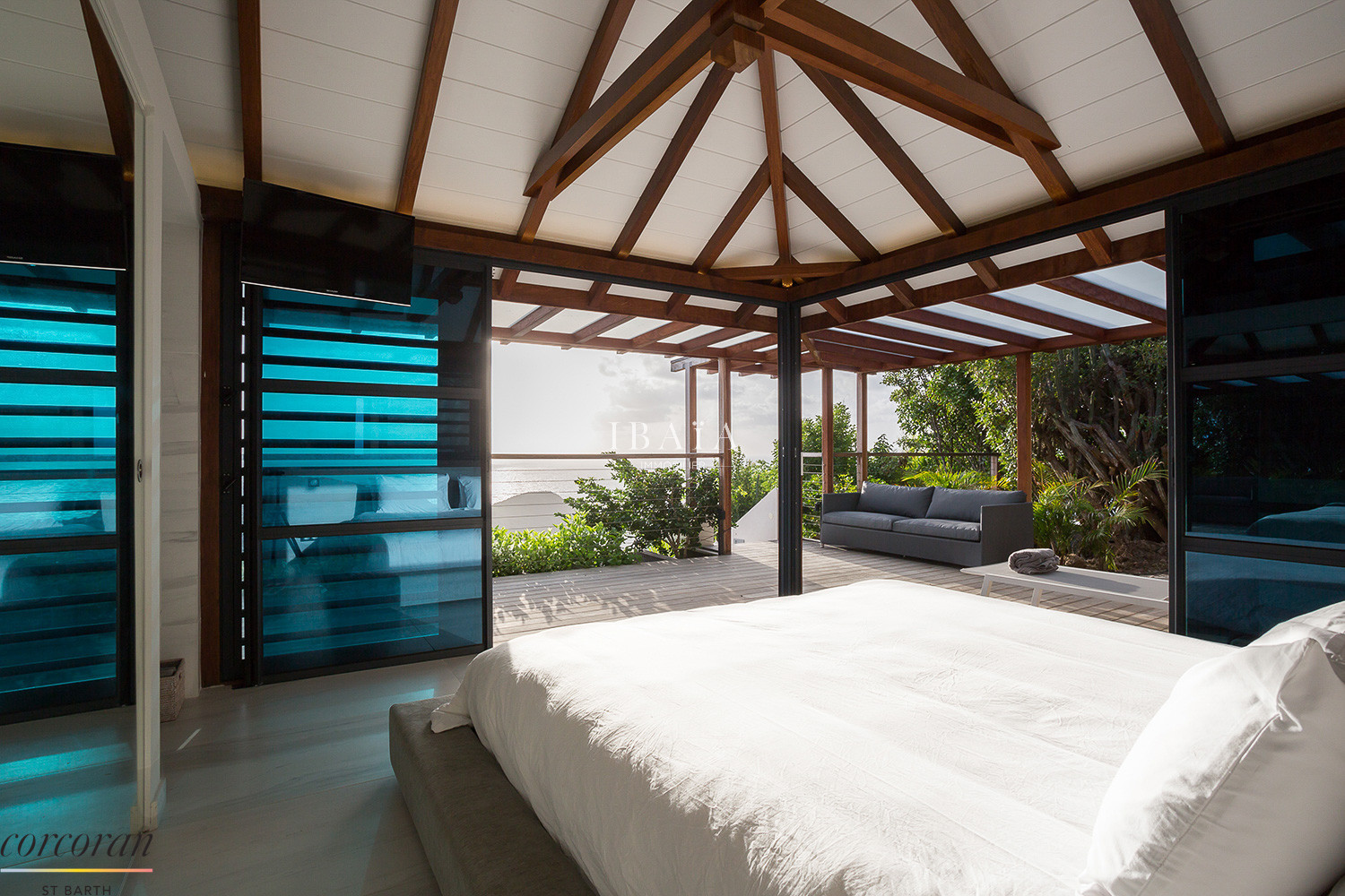 Située à quelques minutes à pied de la plage de Flamands et de l'Hotel Cheval Blanc, la villa entièrement climatisée s'articule sur 2 niveaux.