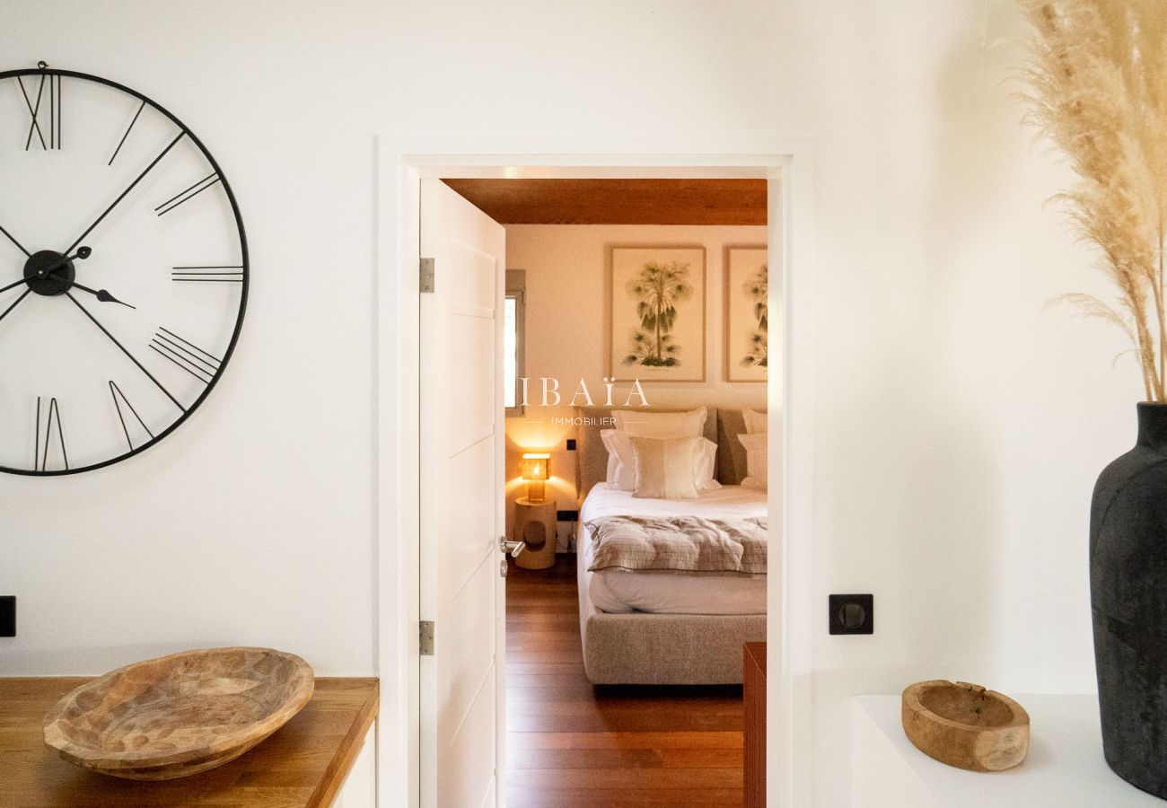 À deux pas de la plage de St Jean, la Villa Vi séduit par son esprit bohème chic et son atmosphère conviviale. Parfaitement conçue pour accueillir familles ou groupes d’amis, elle dispose de quatre chambres climatisées, dont deux avec salle de bain partagée, réparties entre le bâtiment principal et un bungalow indépendant, offrant ainsi intimité et confort à chacun.