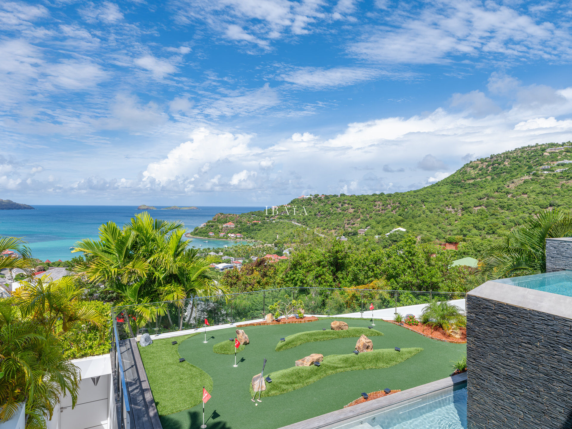 Située à quelques minutes à pied de la plage de Flamands et de l'Hotel Cheval Blanc, la villa entièrement climatisée s'articule sur 2 niveaux.