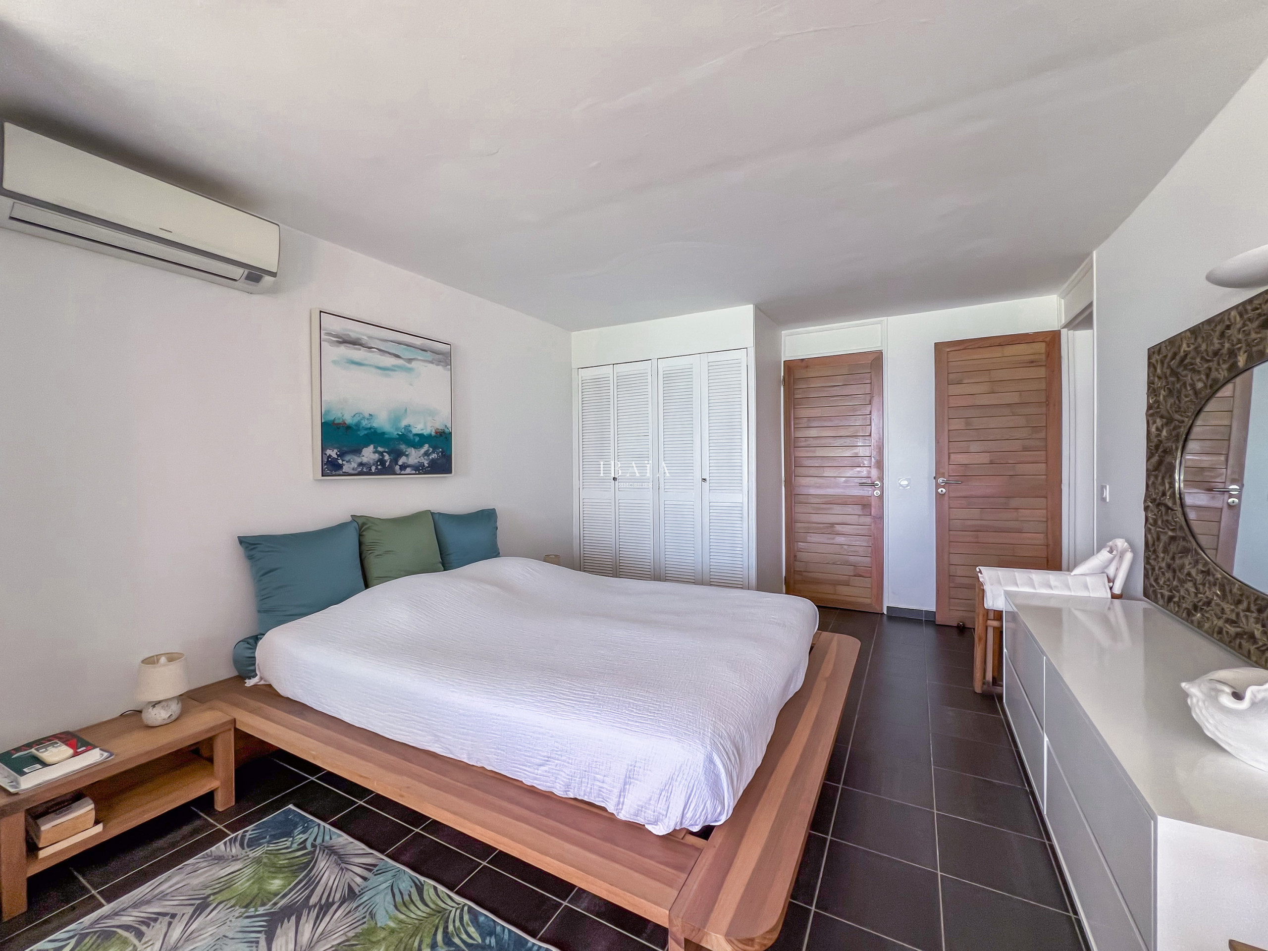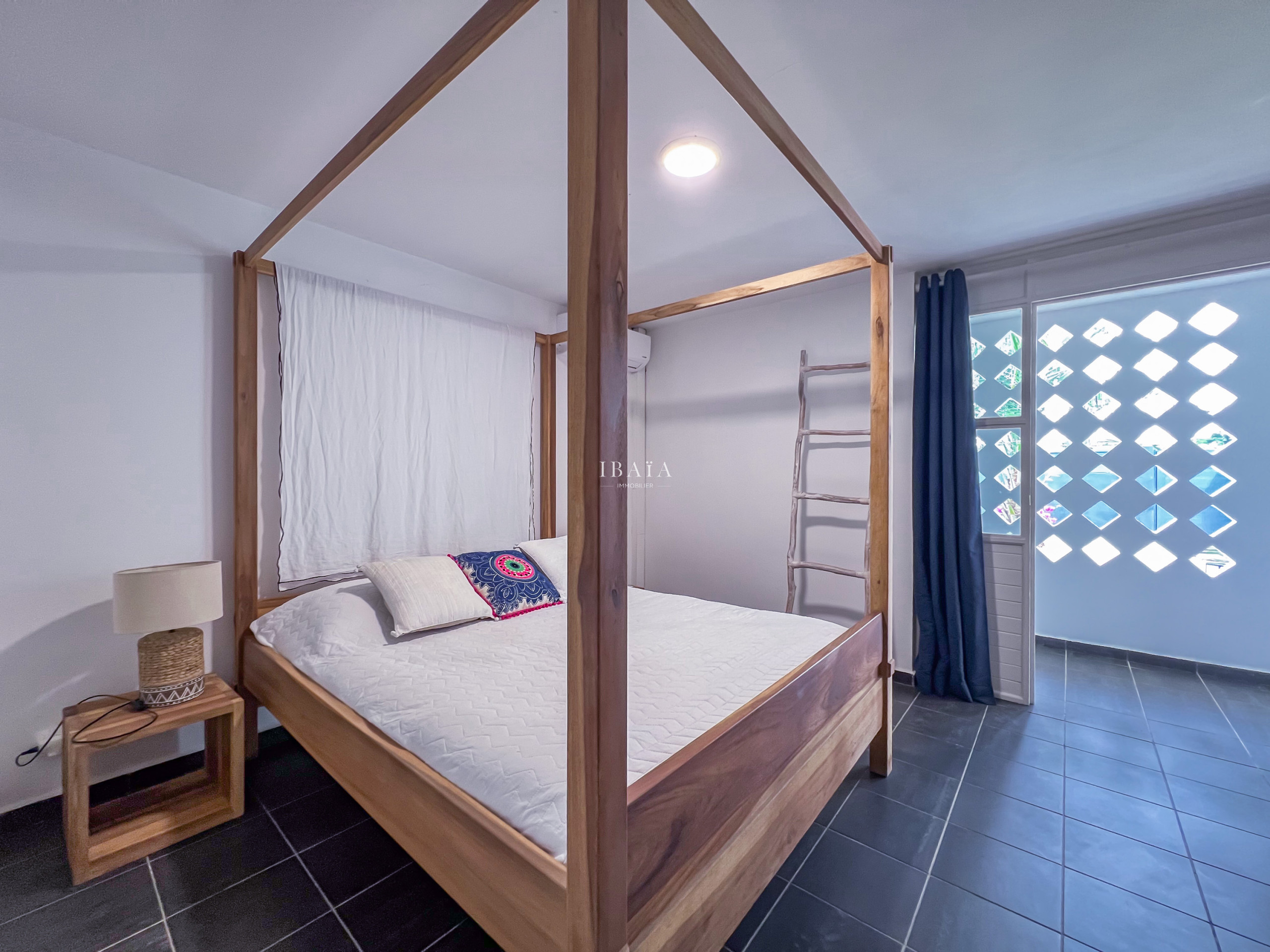 Pensée pour accueillir jusqu’à 9 personnes dans un confort absolu, cette villa de 150 m² déploie ses espaces généreux face à l’un des plus beaux lagons de Guadeloupe. Sa terrasse ombragée prolonge naturellement le séjour et invite à des moments de partage inoubliables, avec pour toile de fond la mer azur et les cocotiers.