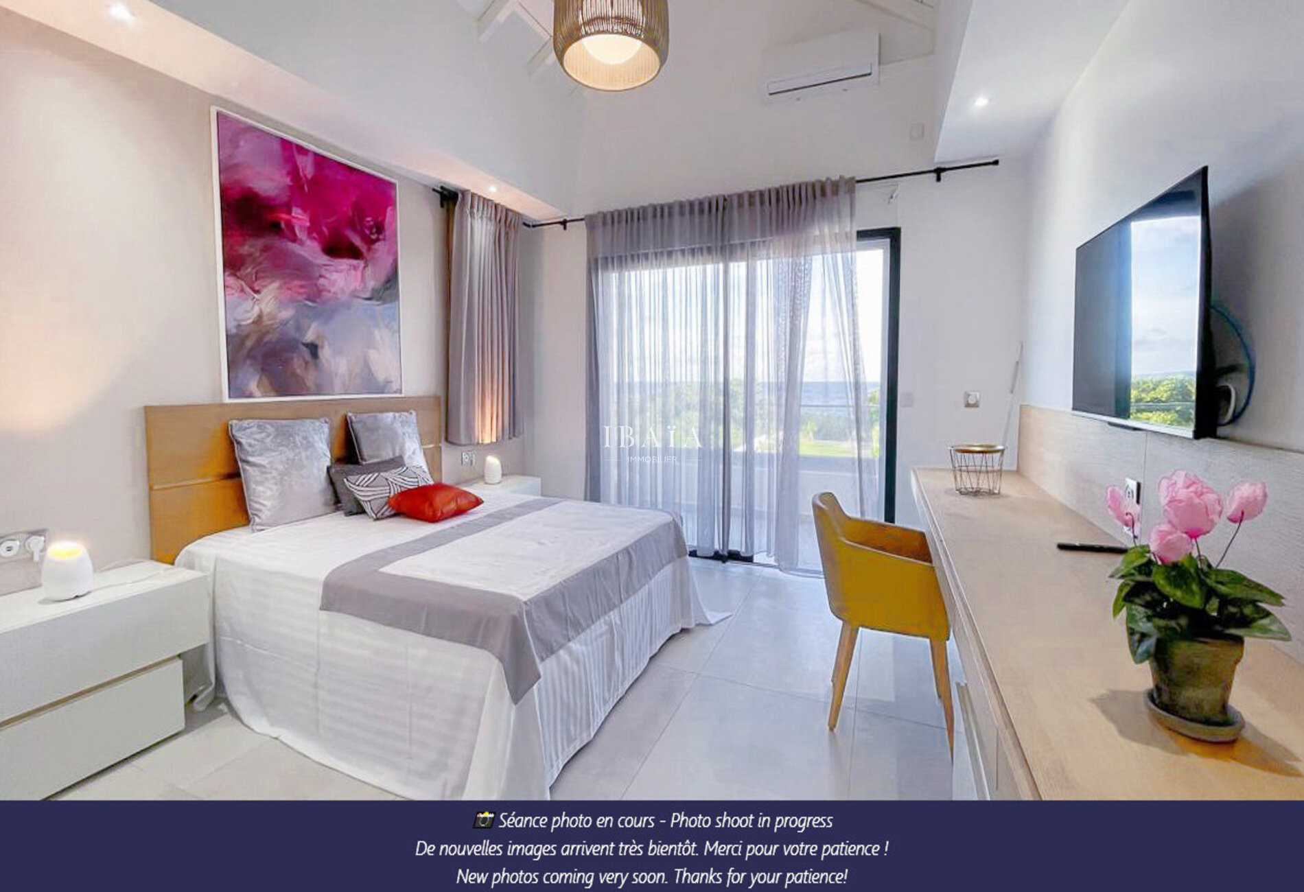· 3 magnifiques suites climatisées à l'étage avec dressing sur-mesure, salles de bain attenantes, et balcons privatifs offrant une vue imprenable sur Marie-Galante et la mer