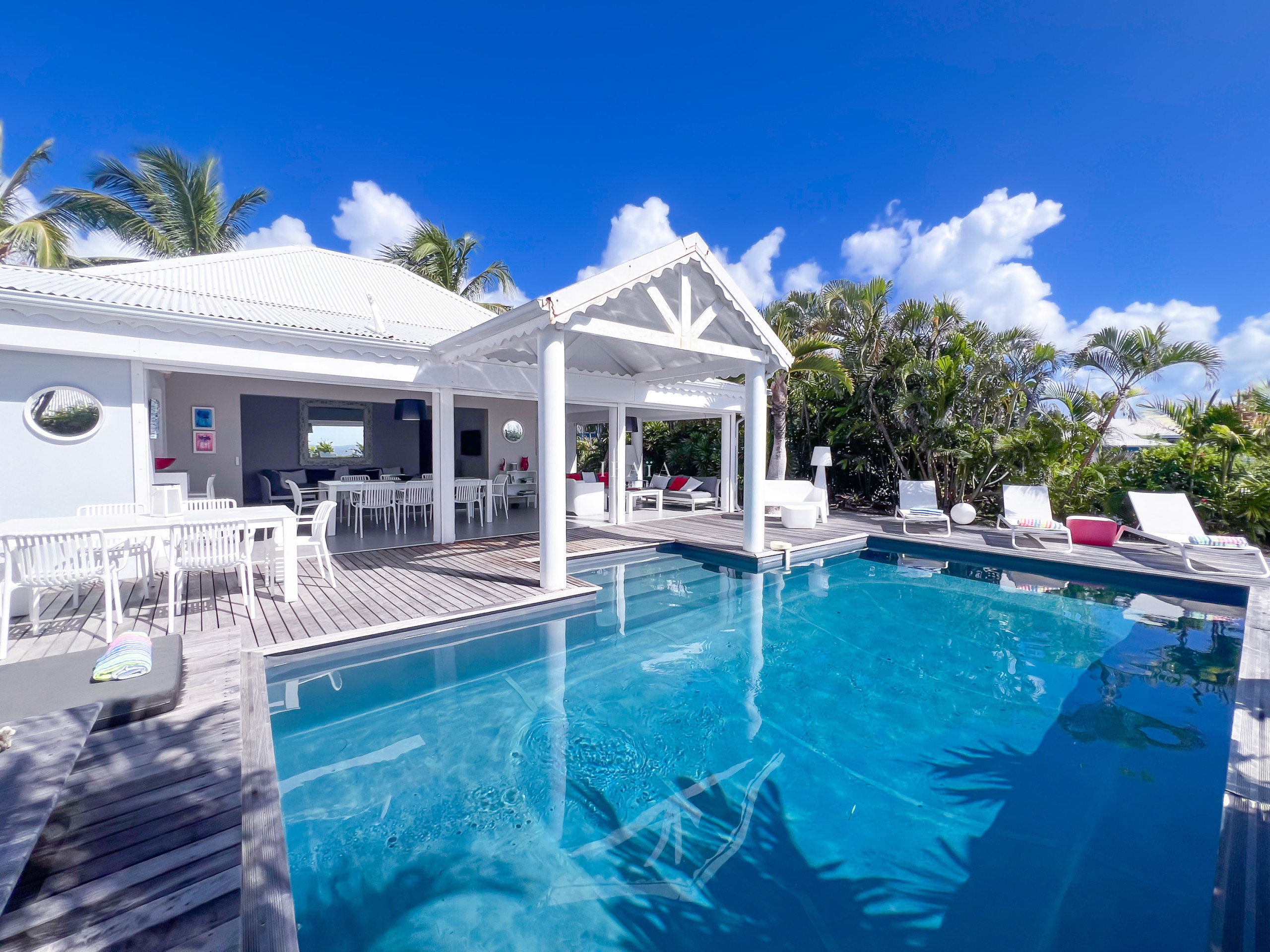 Récemment rénovée et s’inspirant d’une architecture caribéenne, la villa donne un cadre à la fois authentique et moderne.
