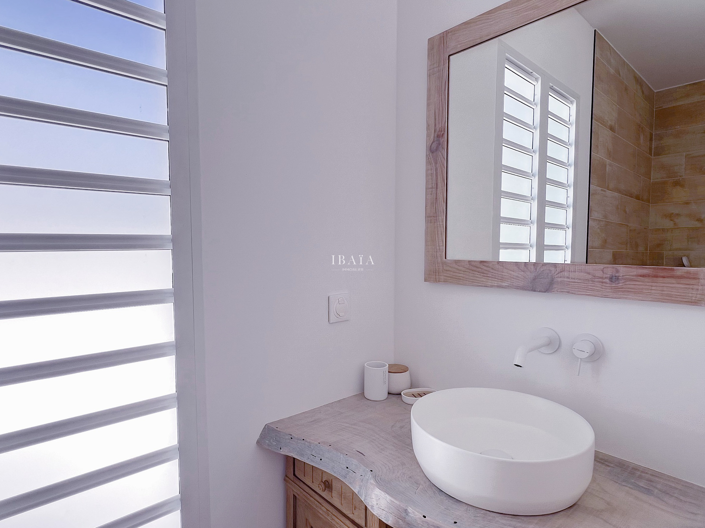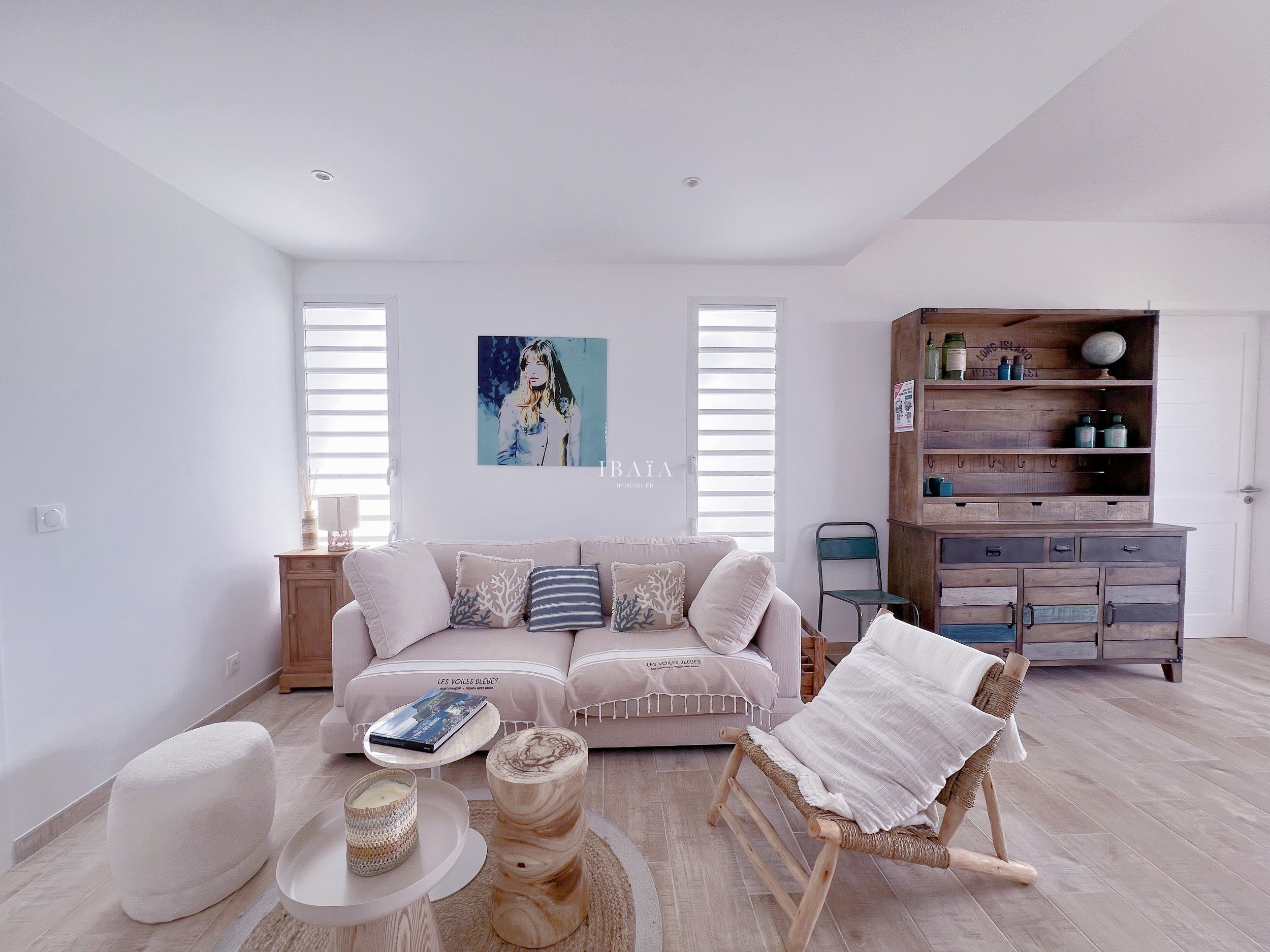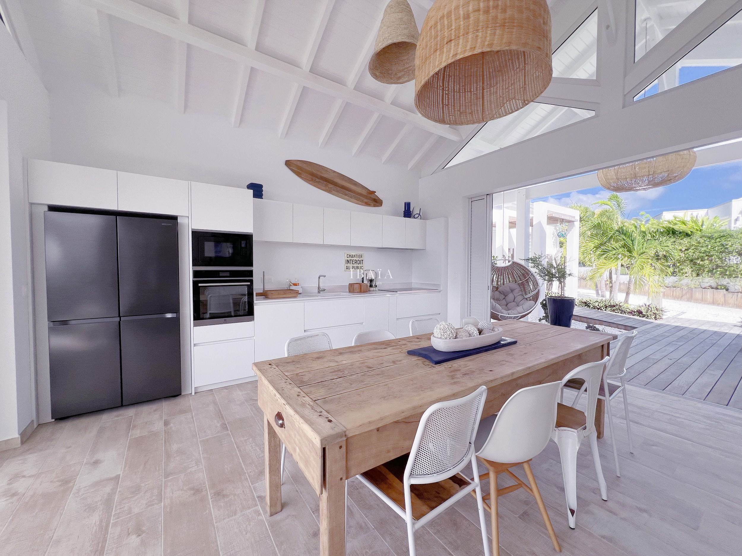 · Une cuisine américaine parfaitement équipée pour des moments gourmands derrière les fourneaux avec une délicate vue mer