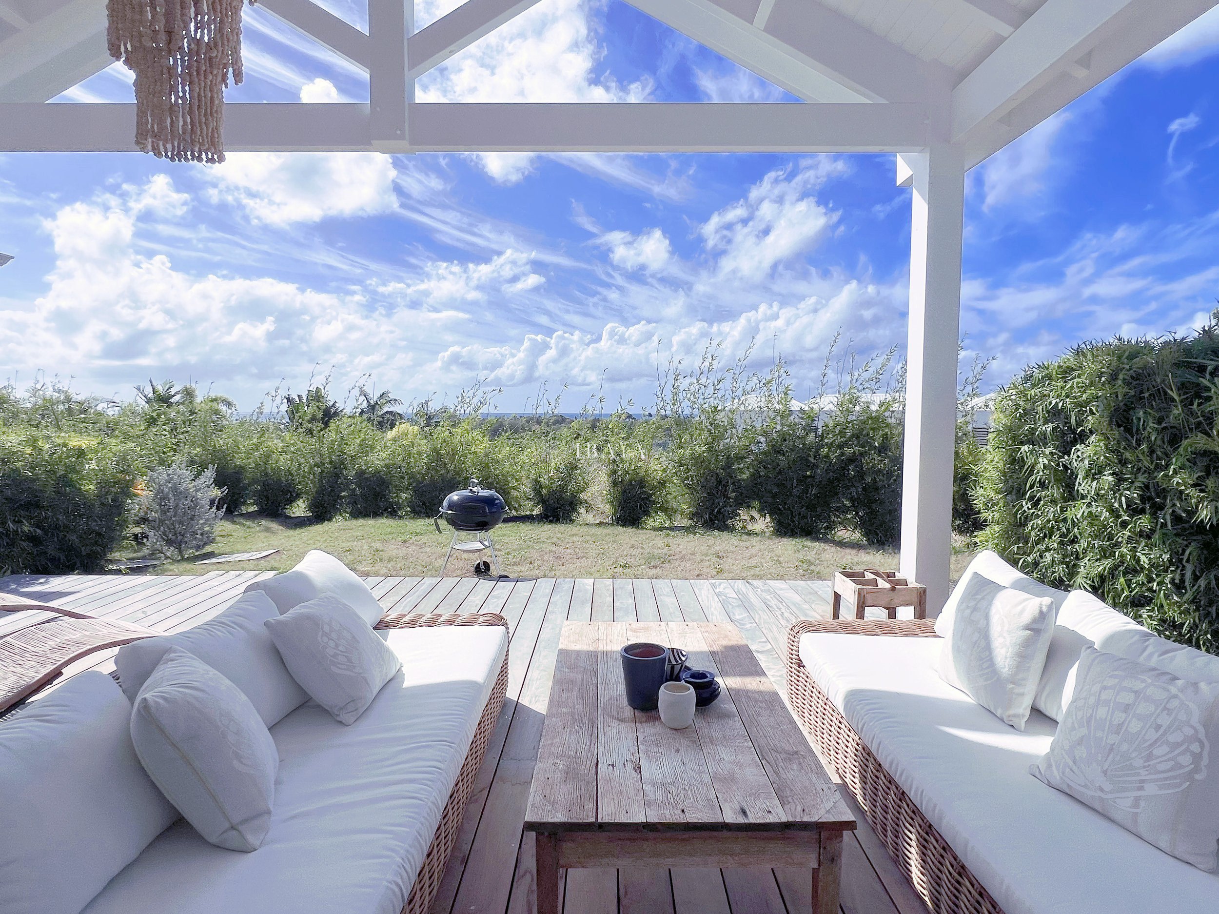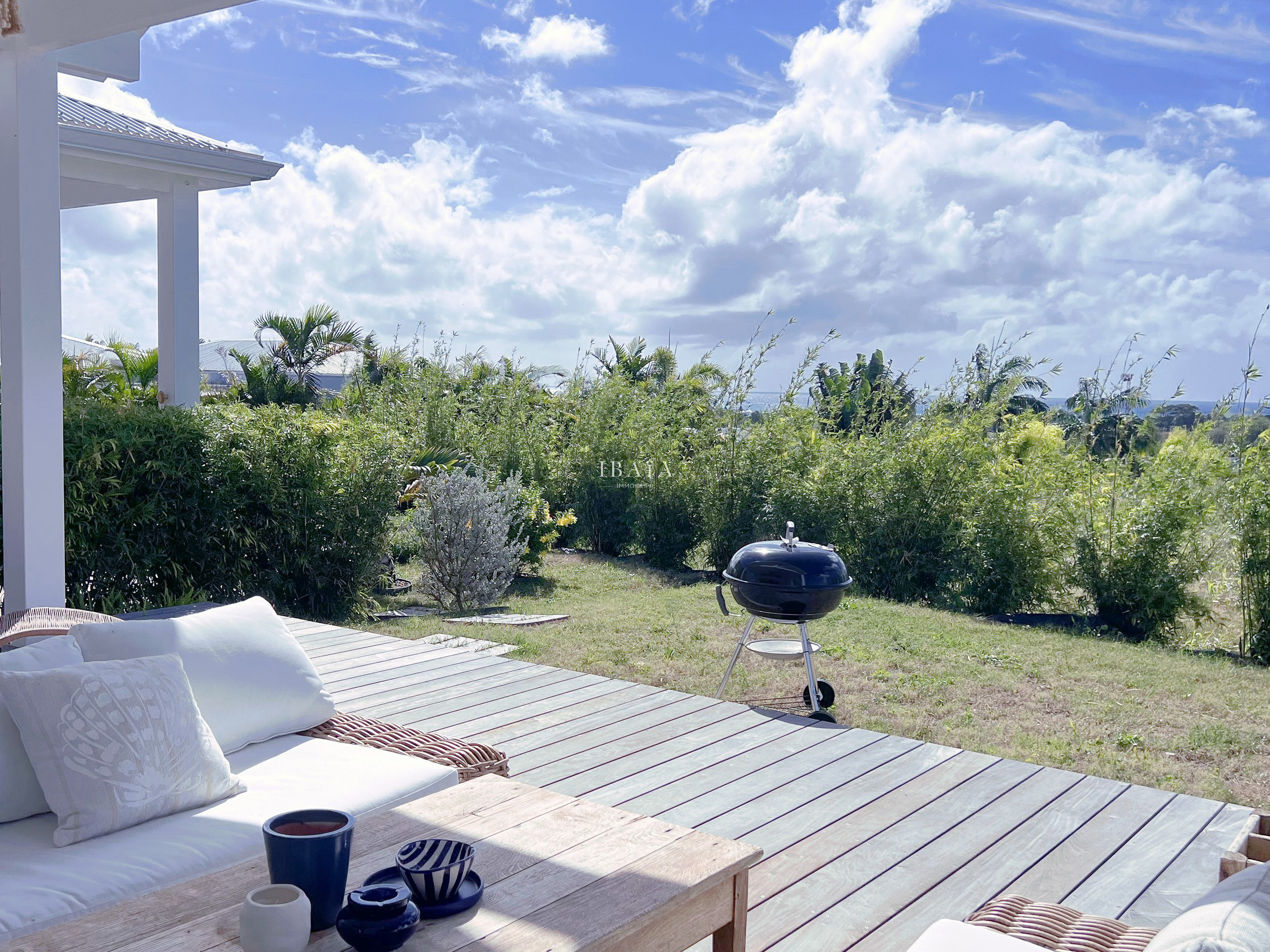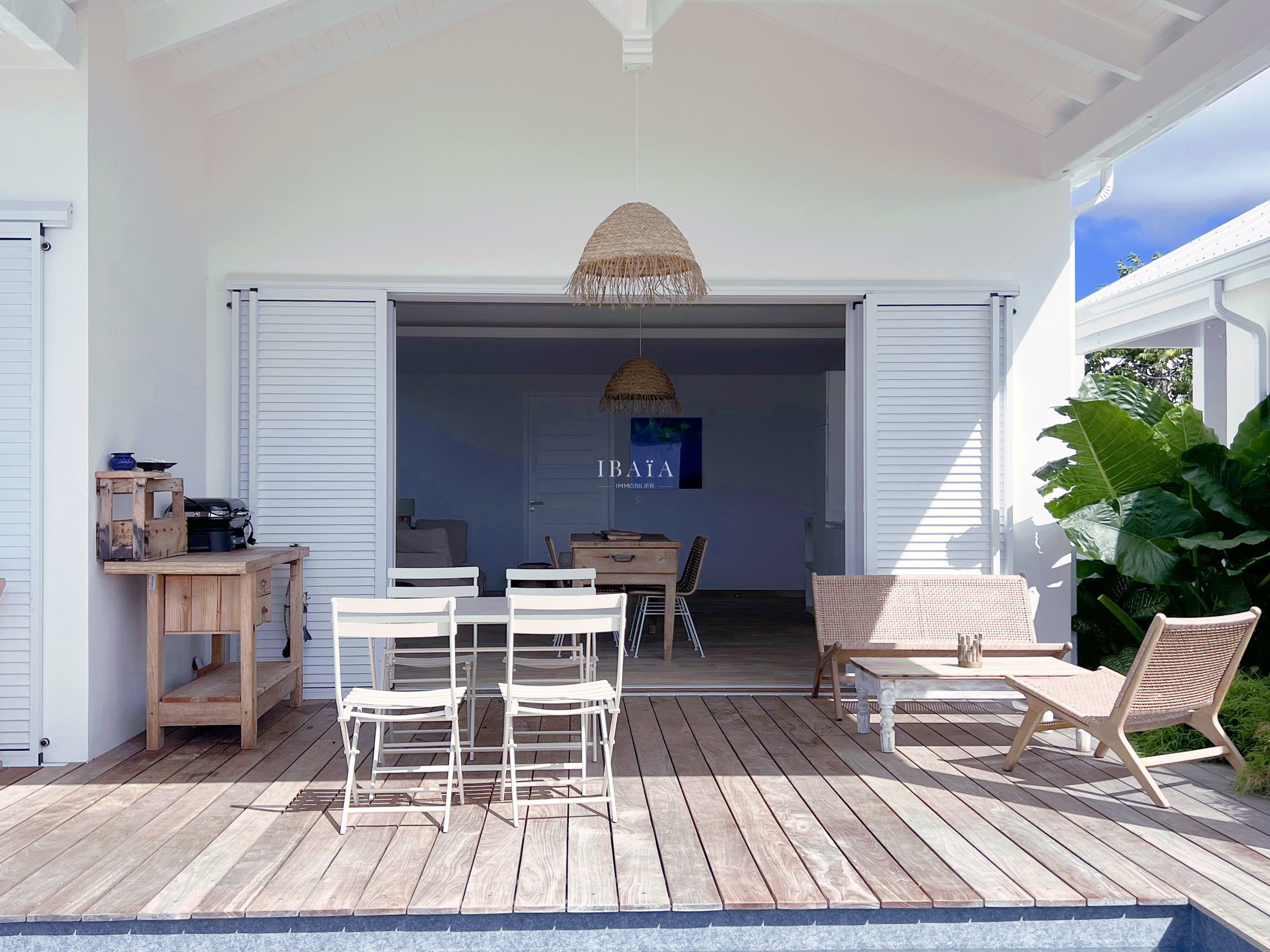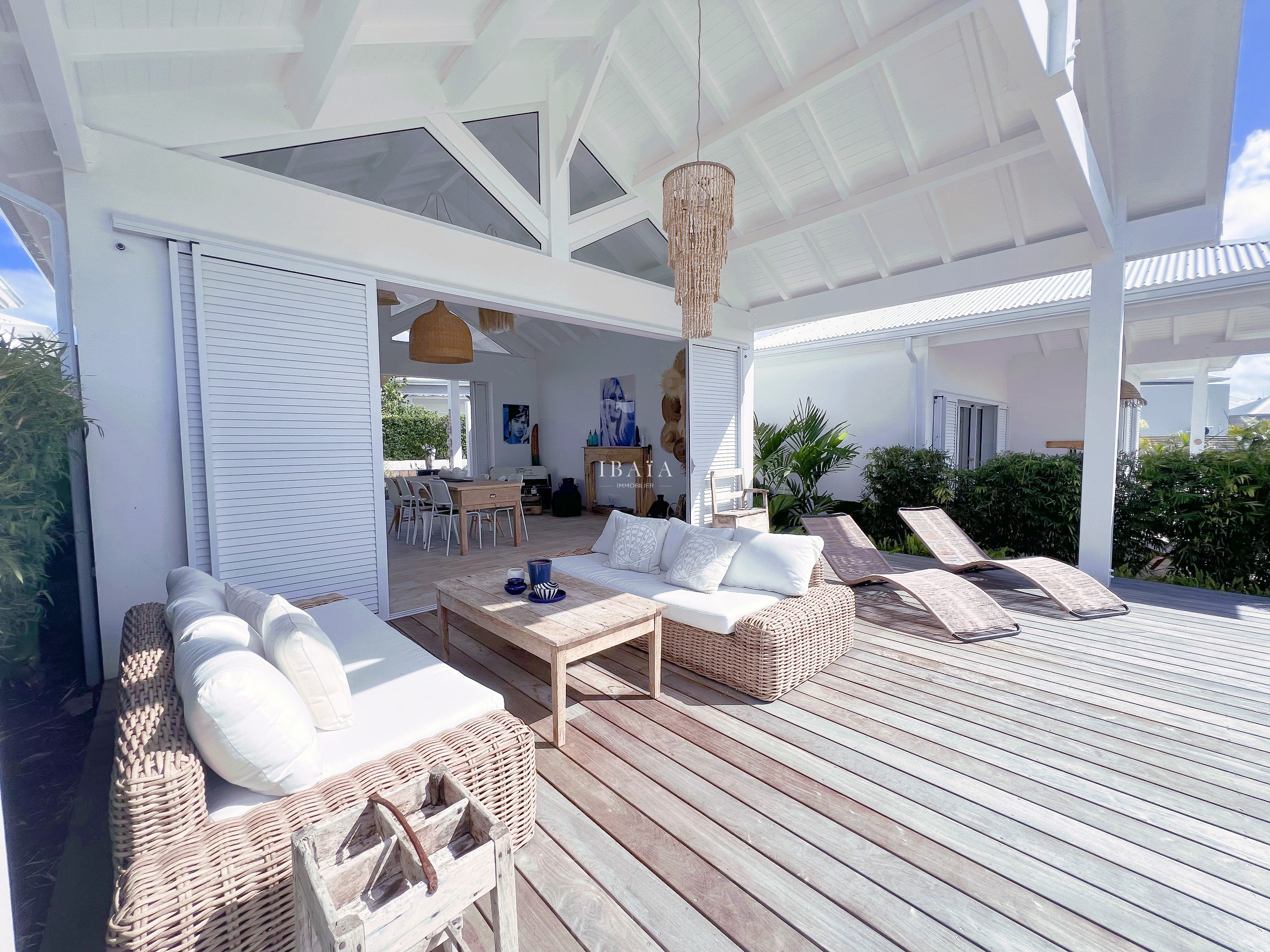 · Un espace central convivial orné d'une vaste terrasse ombragée composée d'un confortable salon d'extérieur et d'un coin barbecue