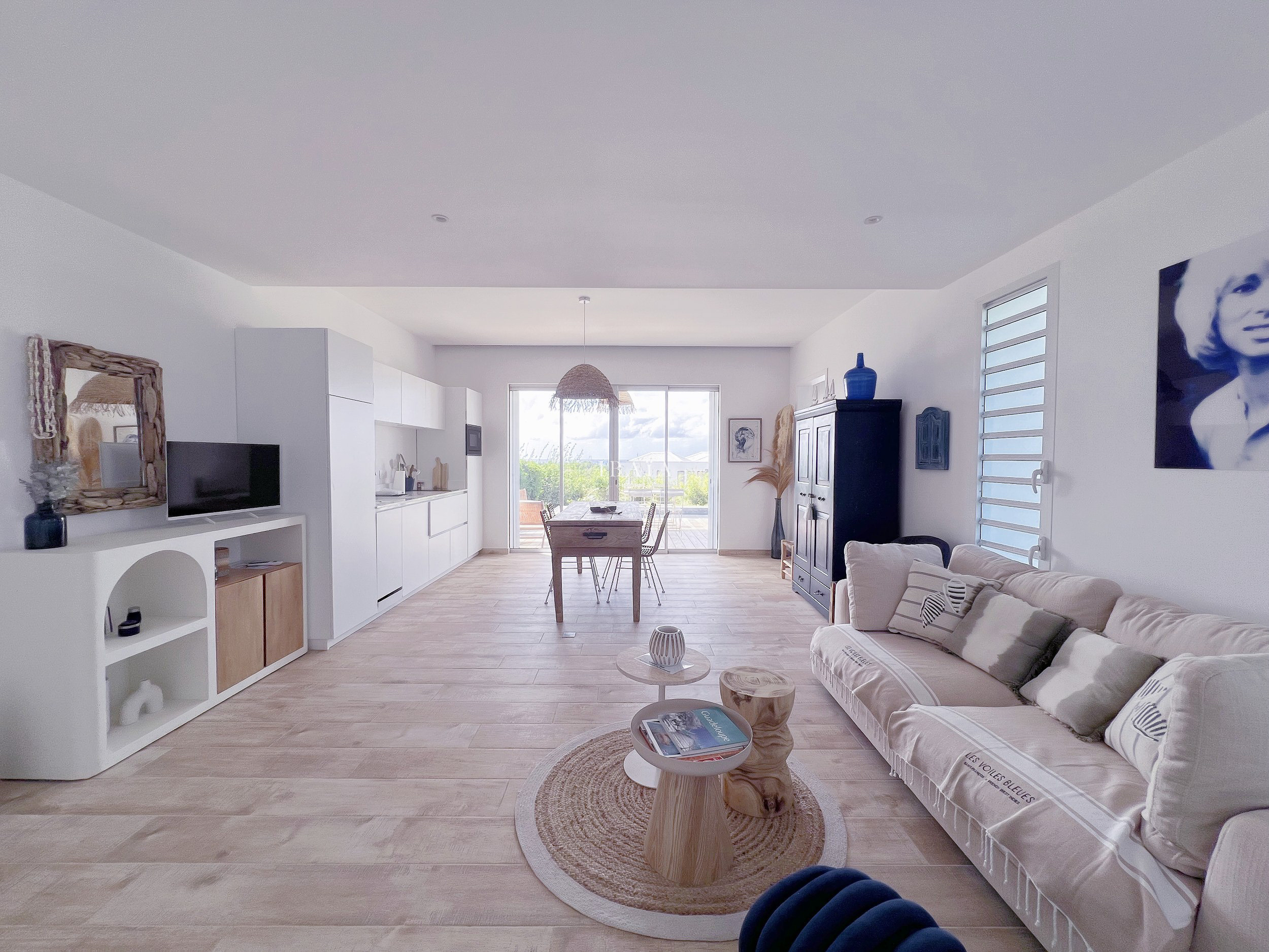 · Un vaste séjour lumineux avec télévision à écran plat, ouvert sur la cuisine et la terrasse