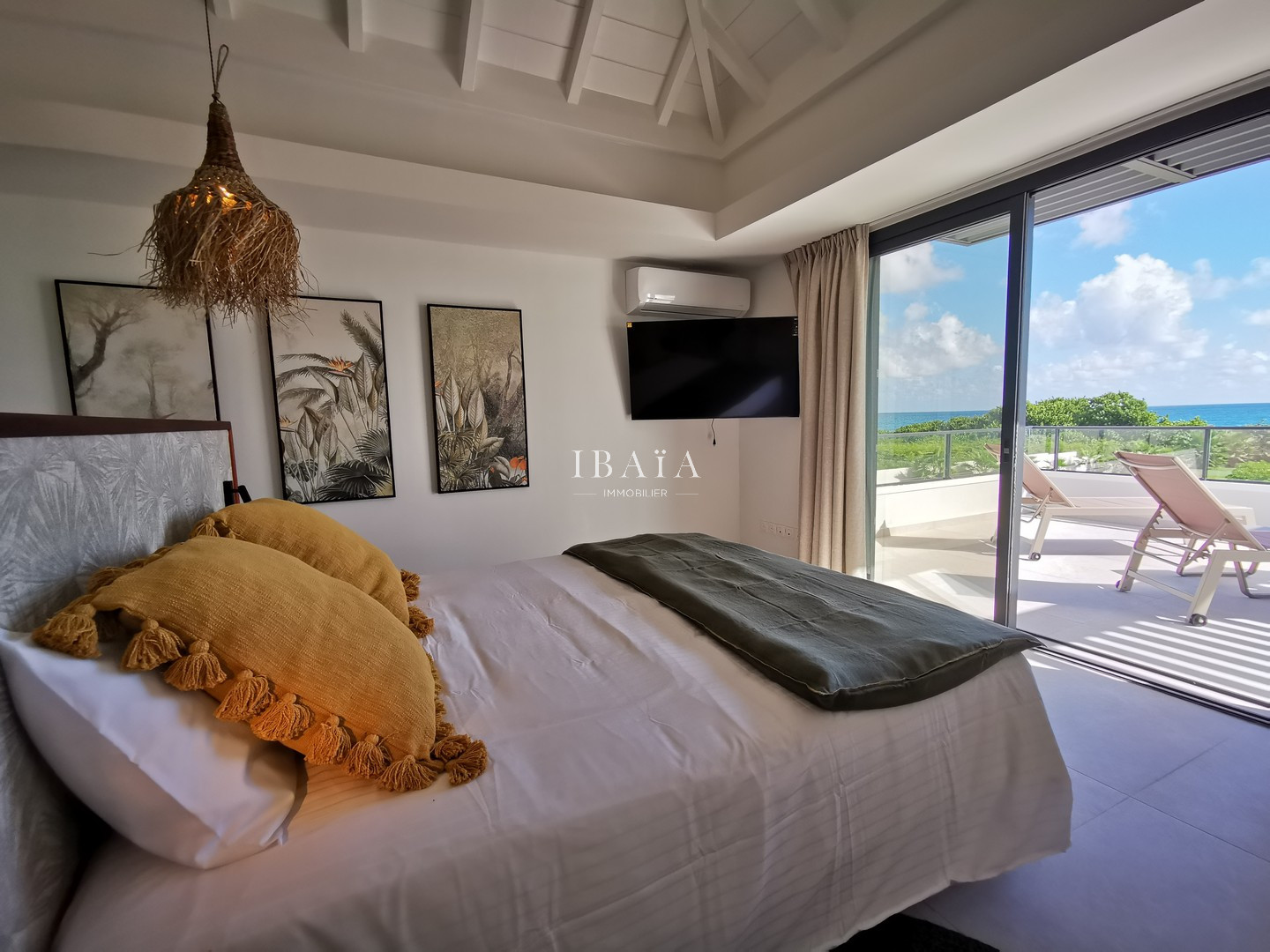 · 3 vastes chambres climatisées à l’étage offrant une vue panoramique sur la mer, avec télévision, salles de bain attenantes et balcon pour savourer des instants suspendus face à l’horizon
