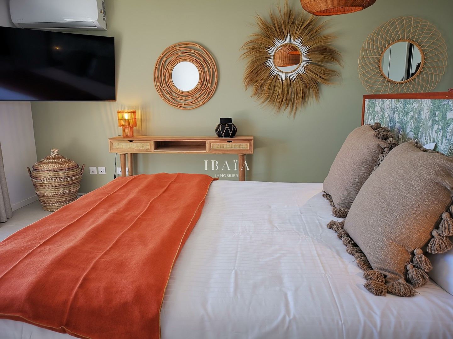 · Une somptueuse suite parentale climatisée de 80 m² à l’étage, avec lit king size et salle de bain attenante dotée d'une double vasque et d'une grande douche à l’italienne
