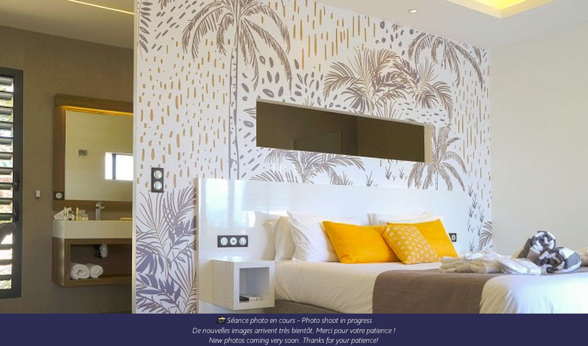 Dès votre arrivée, laissez-vous séduire par l’atmosphère unique des lieux : une majestueuse baie vitrée dévoilant un jardin tropical luxuriant et, en toile de fond, l’océan scintillant et la silhouette envoûtante de Marie-Galante, la promesse d’un séjour hors du temps !